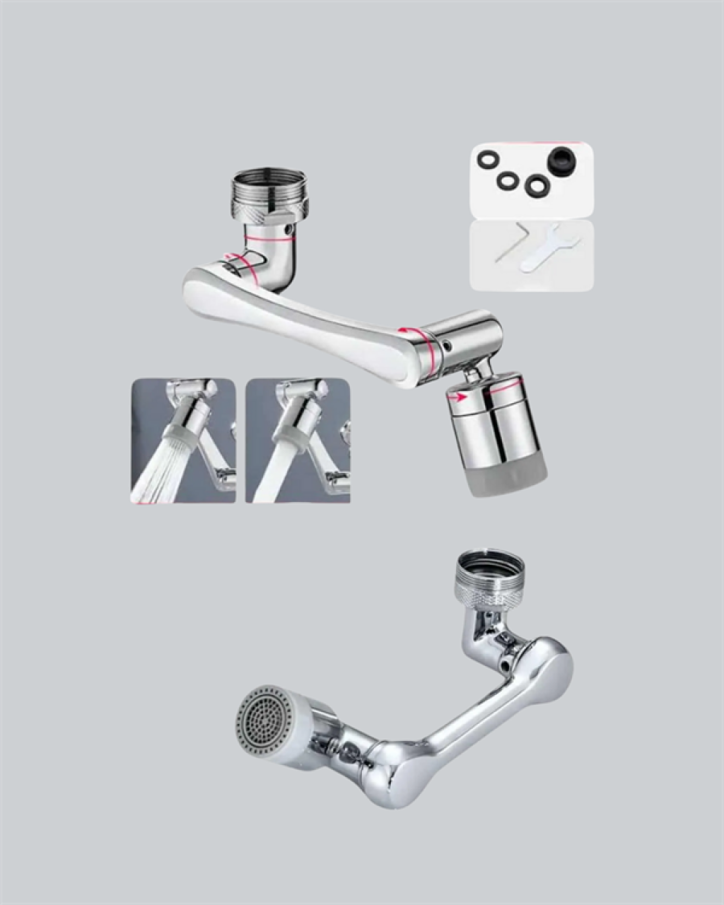 2 Modlu 1080° Dönebilen Musluk Başlığı Esnek 3 Eklemli Hareketli Tasarım