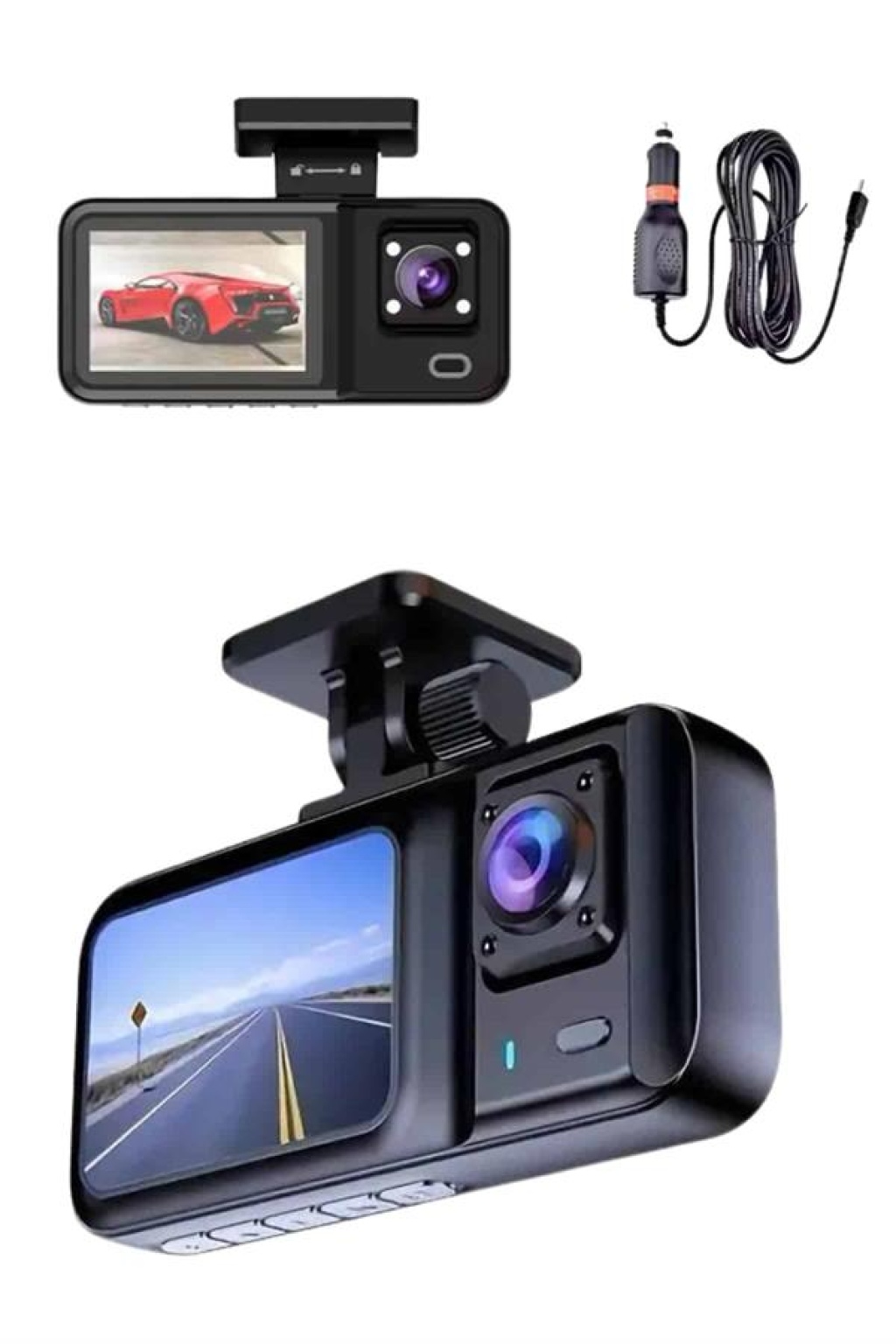 1080P 3 Lensli WİFİ Araç İçi Kameralı Ekran DVR Kaydedici Gece Görüşlü