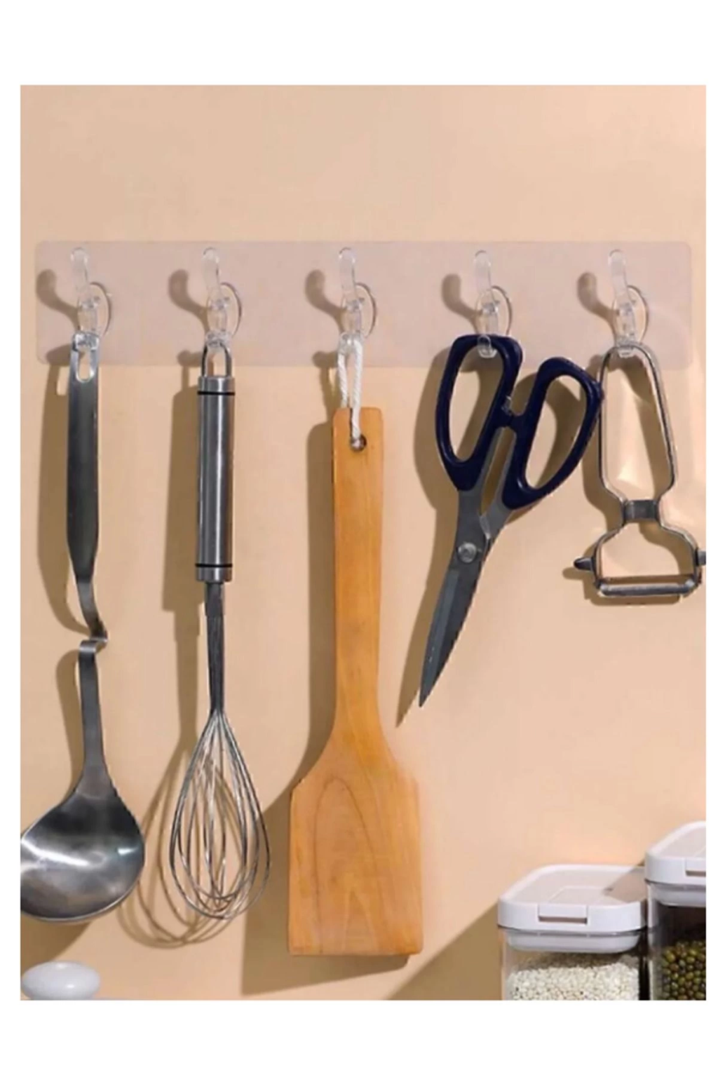2 Adet Kendinden Yapışkanlı Güçlü Şeffaf 5li Askılık - Kapı Arkası Mutfak Duvar Banyo