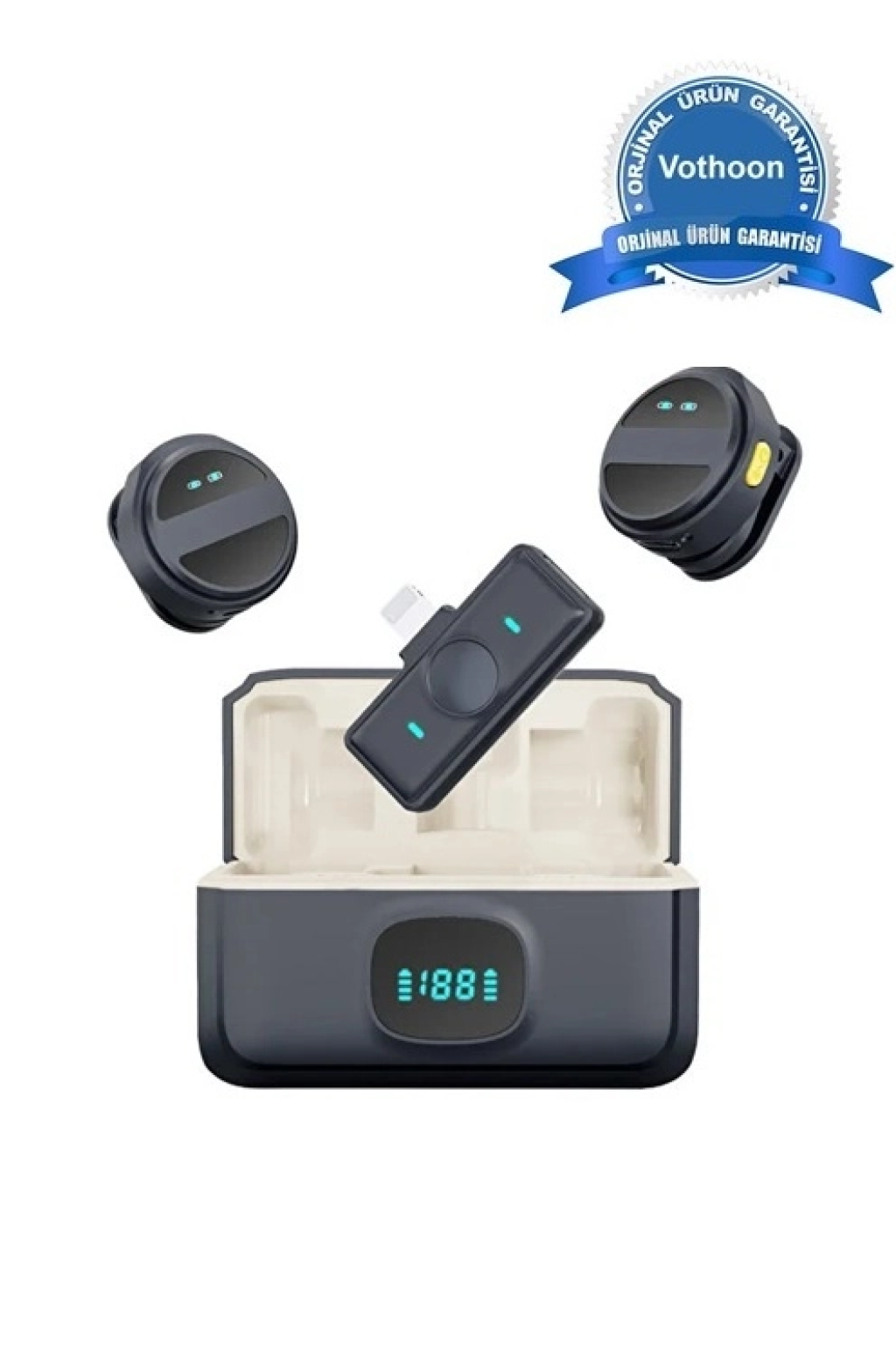 Kablosuz Profesyonel İkili Yayın Yaka Mikrofonu Şarj Kutu Mıknatıslı Typce Lightning Çıkış Mikrofon