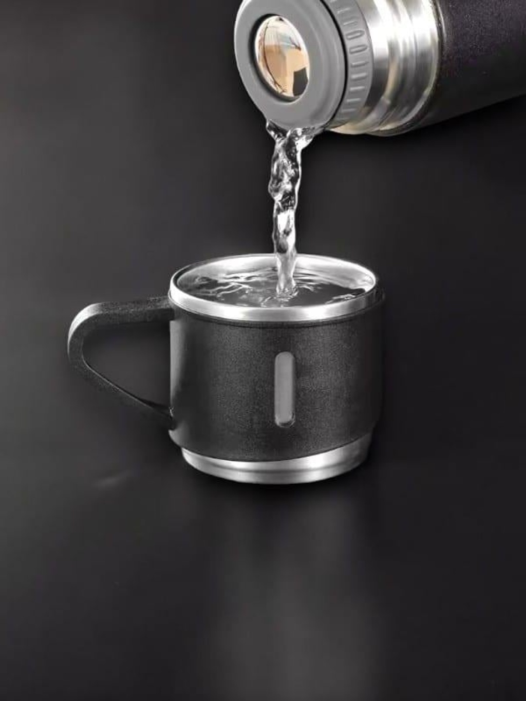 Termos Seti 3'lü Bardak Seti Isı Dayanıklı Siyah Paslanmaz Çelik Vakumlu