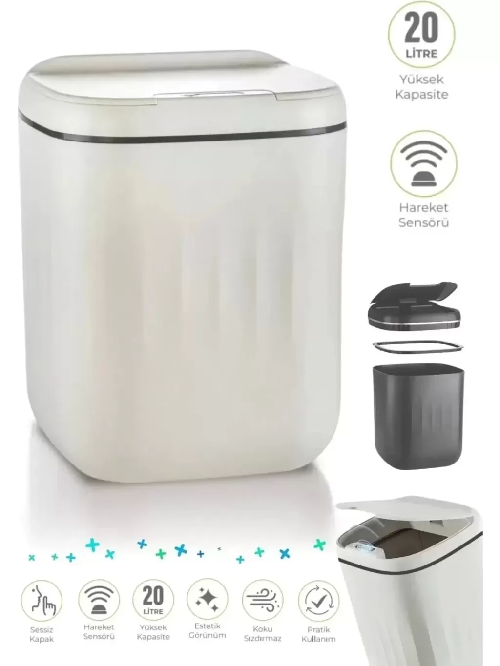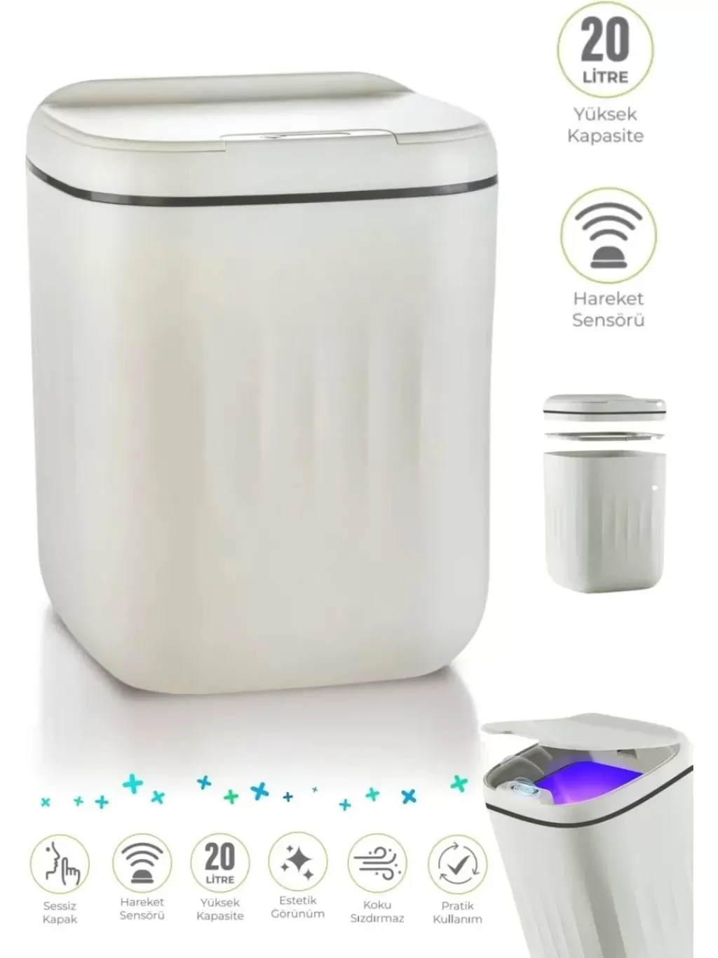 Akıllı Sensörlü Çöp Kovası Teknolojik Ofis Banyo Mutfak 20l Uv Işık Antibakteriyel Koku Geçirmez