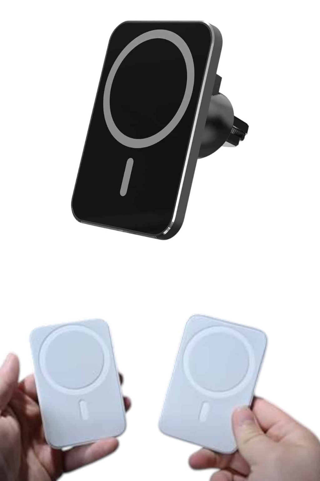 araç uyumlu Kablosuz 15W Taşınabilir Şarj Aleti Çift Kablo