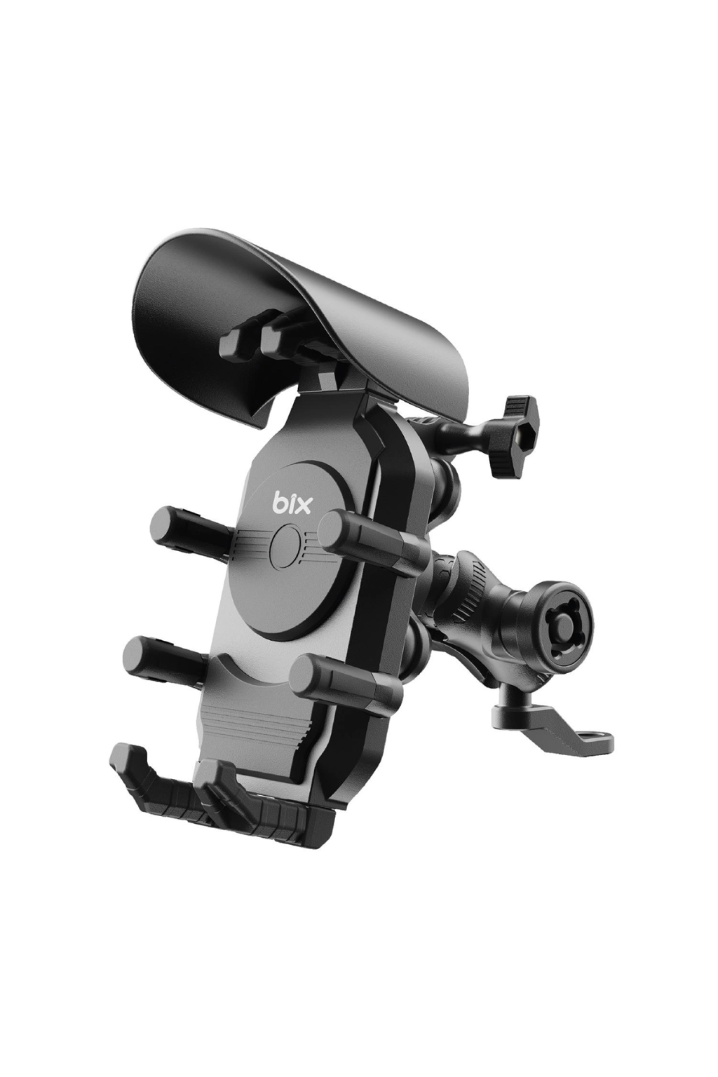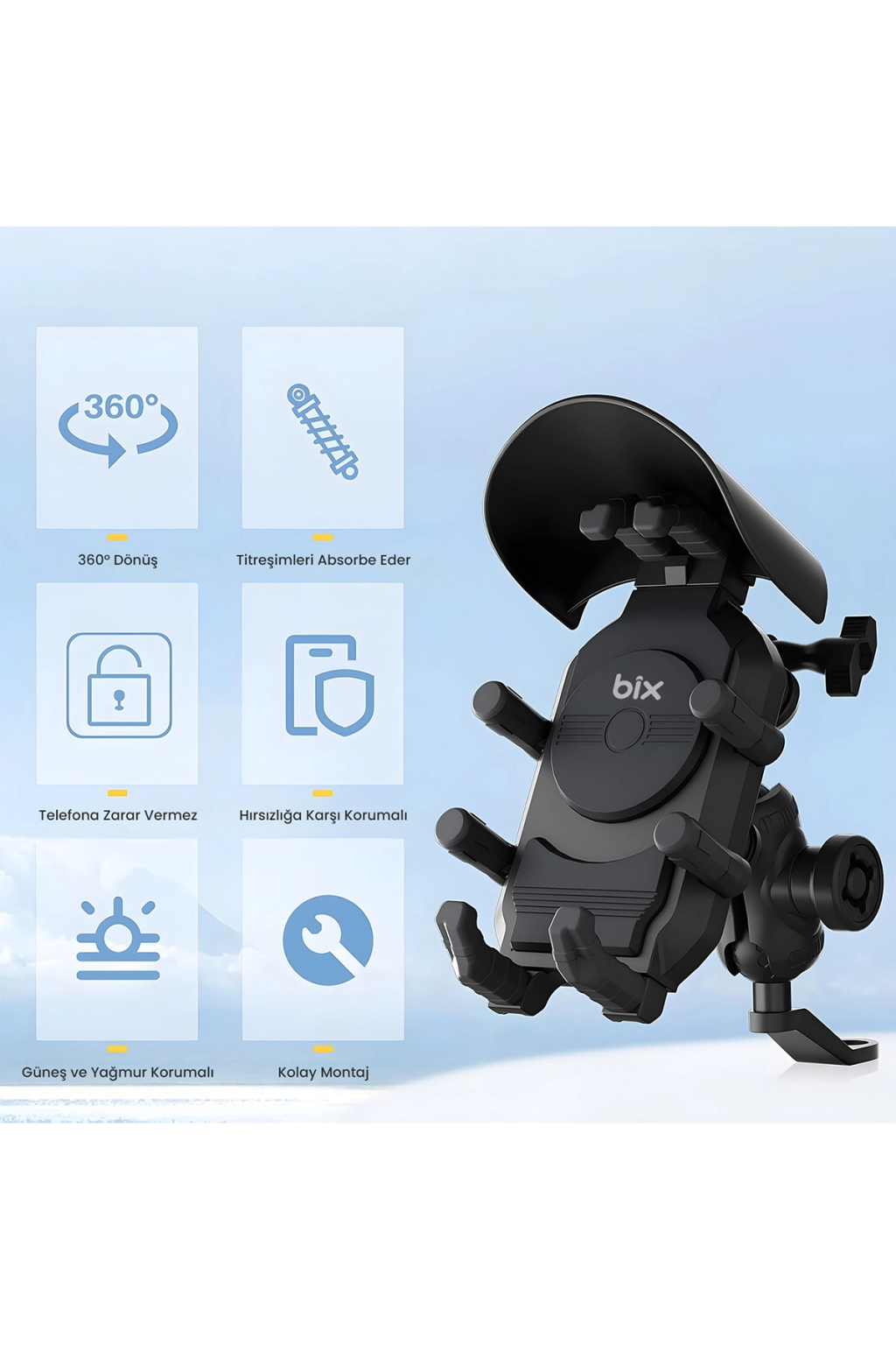 Gidon Bağlantılı Güneş Ve Yağmur Korumalı 360° Derece Ayarlanabilir Motosiklet Bisiklet Telefon Tutucu