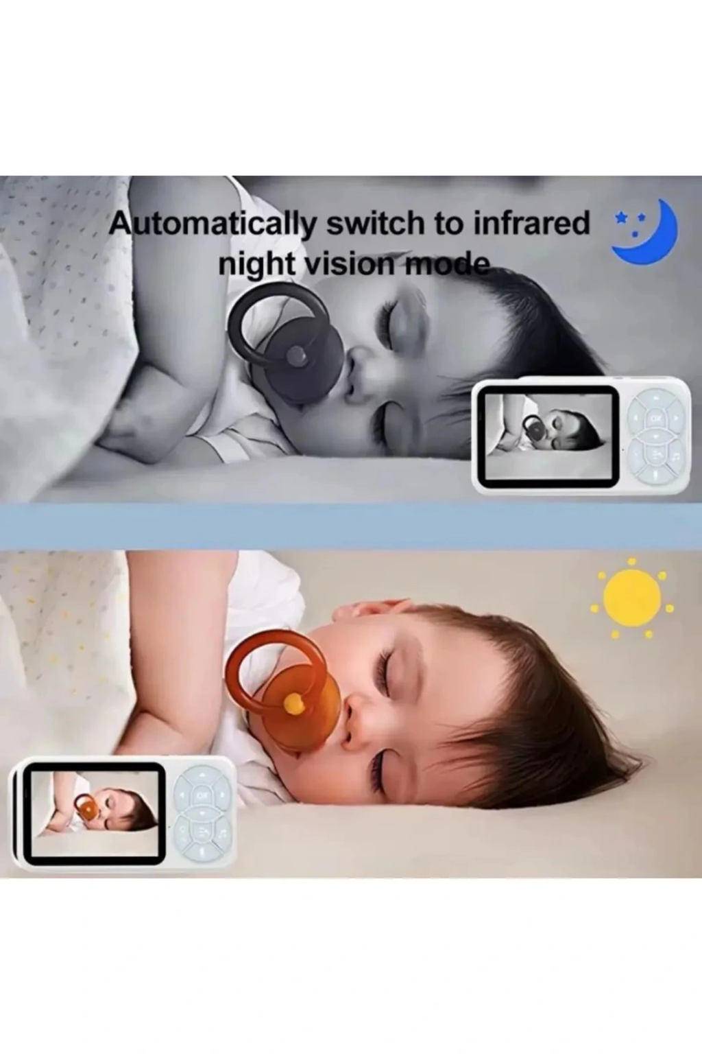 Akıllı Bebek Kamerası Monitörlü Karşılıklı Konuşma Özellikli Sıcaklık İzleme 2.4 İnç Bebek Kamerası