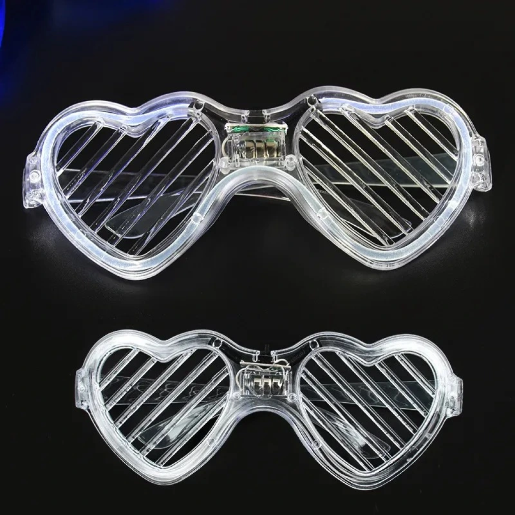 Beyaz Led Işıklı Kalp Gözlük – 3 Modlu Parti Glow Gözlüğü