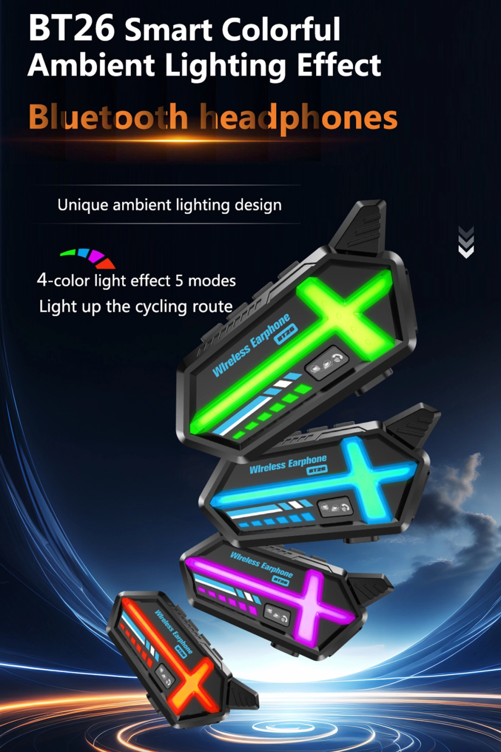 Bt26 Motosiklet Kask Kulaklık Bluetooth Rgb Işıklı 2 Eşleşme Özellikli 1000 Mah Intercom