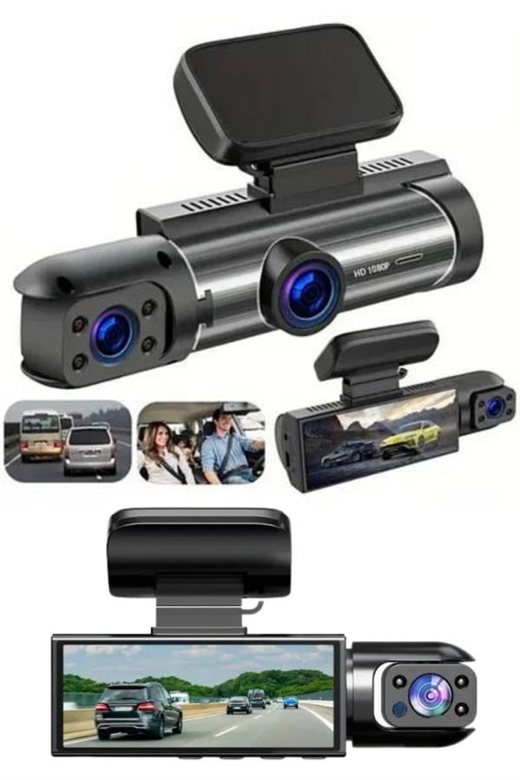 1080P 3 Lensli WİFİ Araç İçi Kameralı Ekran DVR Kaydedici Gece Görüşlü