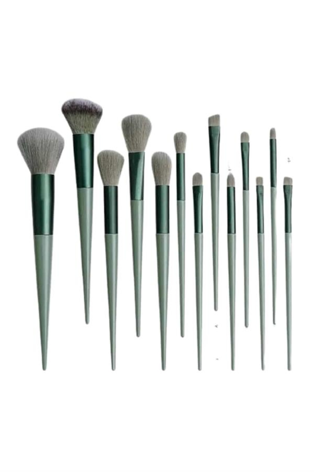 Makyaj Fırça Seti Yeşil 13 Parça Fondöten Fırçası Allık Fırçası Far Fırçası