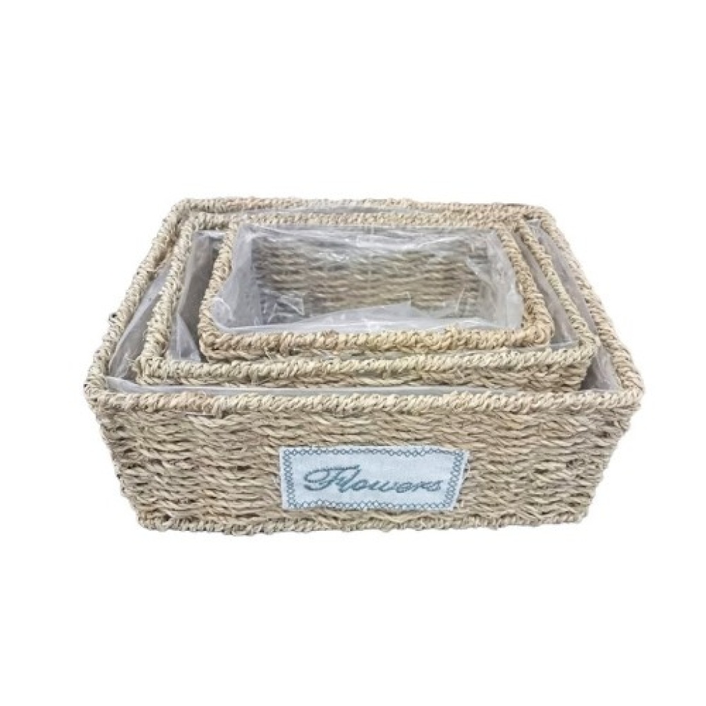 Dikdörtgen Doğal Hasır Saksı Seti - 3'lü