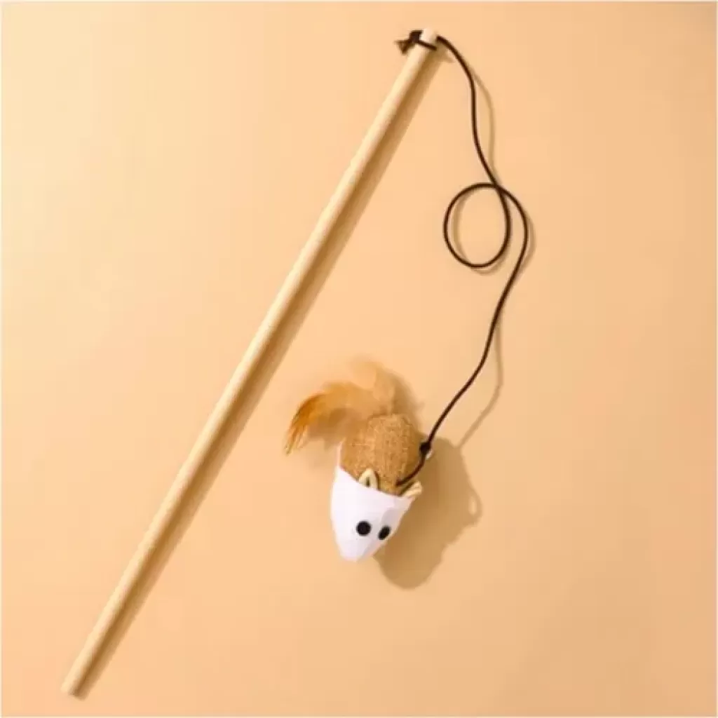 Petzoom Ahşap Değnekli Tüylü Kedi Oltası