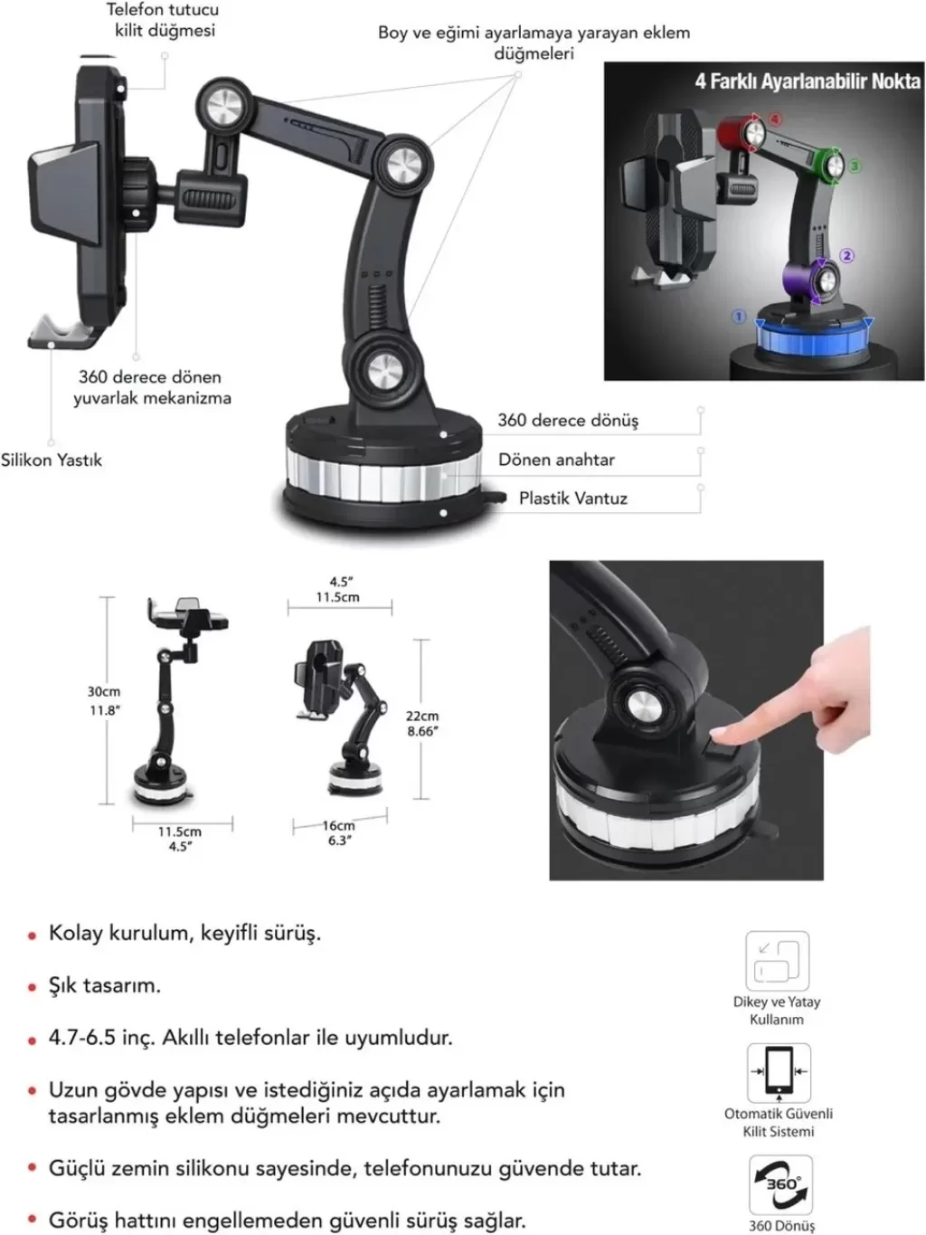 Egonex 360 Derece Dönebilen Ayarlanabilir Araç Içi Vantuzlu Telefon Tutucu