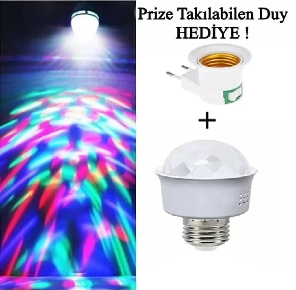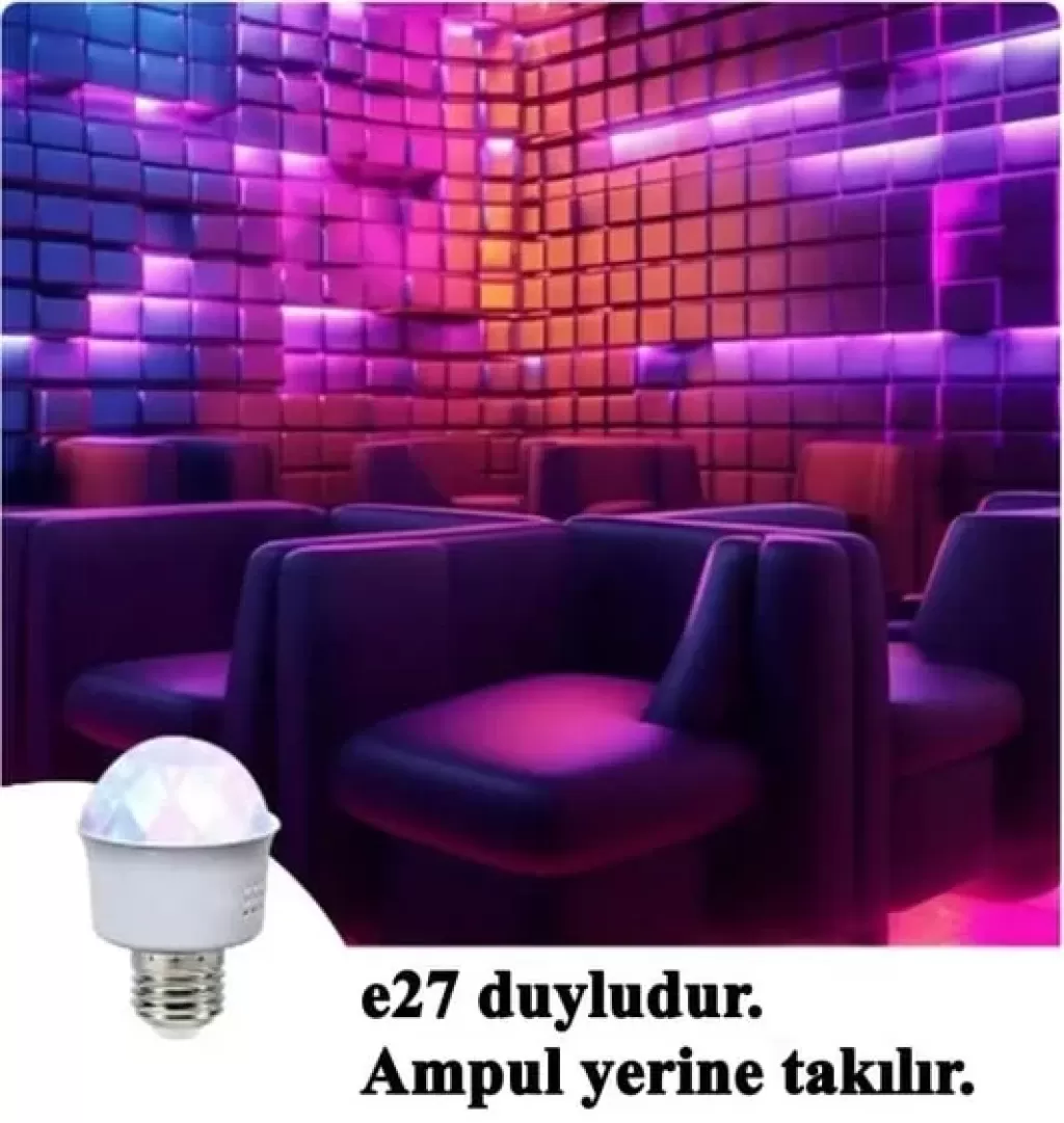 Renkli Led Ampul Disko Ampulü Hareketli 360 Derece Dönen Disko Topu
