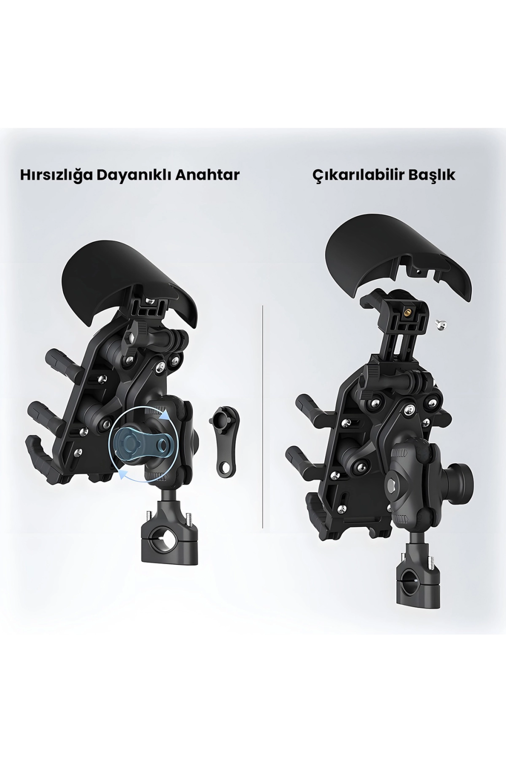 Gidon Bağlantılı Güneş Ve Yağmur Korumalı 360° Derece Ayarlanabilir Motosiklet Bisiklet Telefon Tutucu