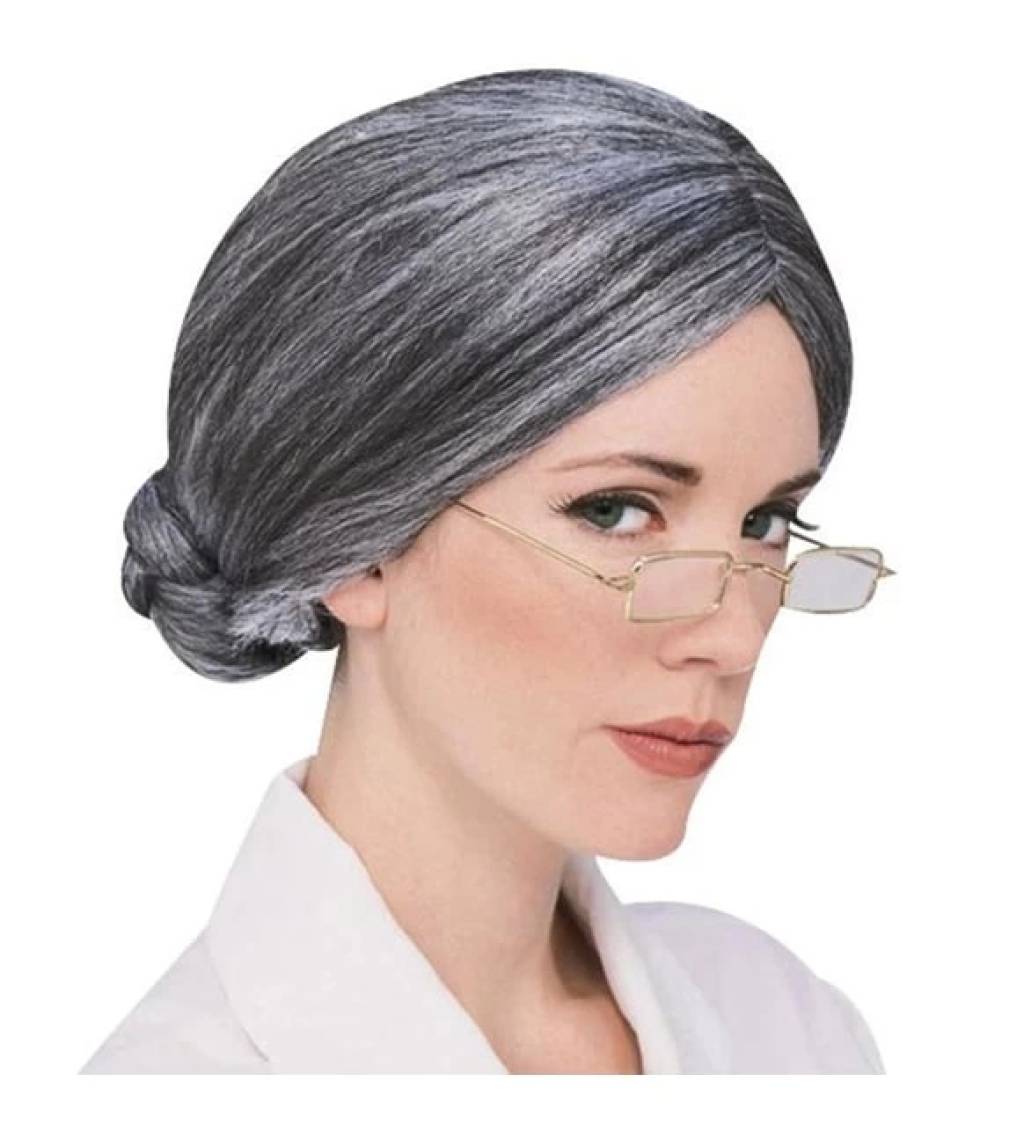 Gri Renk Yaşlı Peruğu Takma Saç Büyükanne Peruğu Yetişkin Çocuk Uyumlu