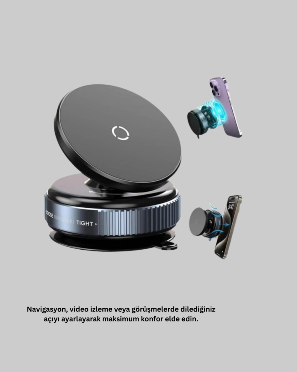 Güçlü Manyetik Tutuşlu 360° Döner Araç Telefon Tutucu – Vakumlu Montajlı