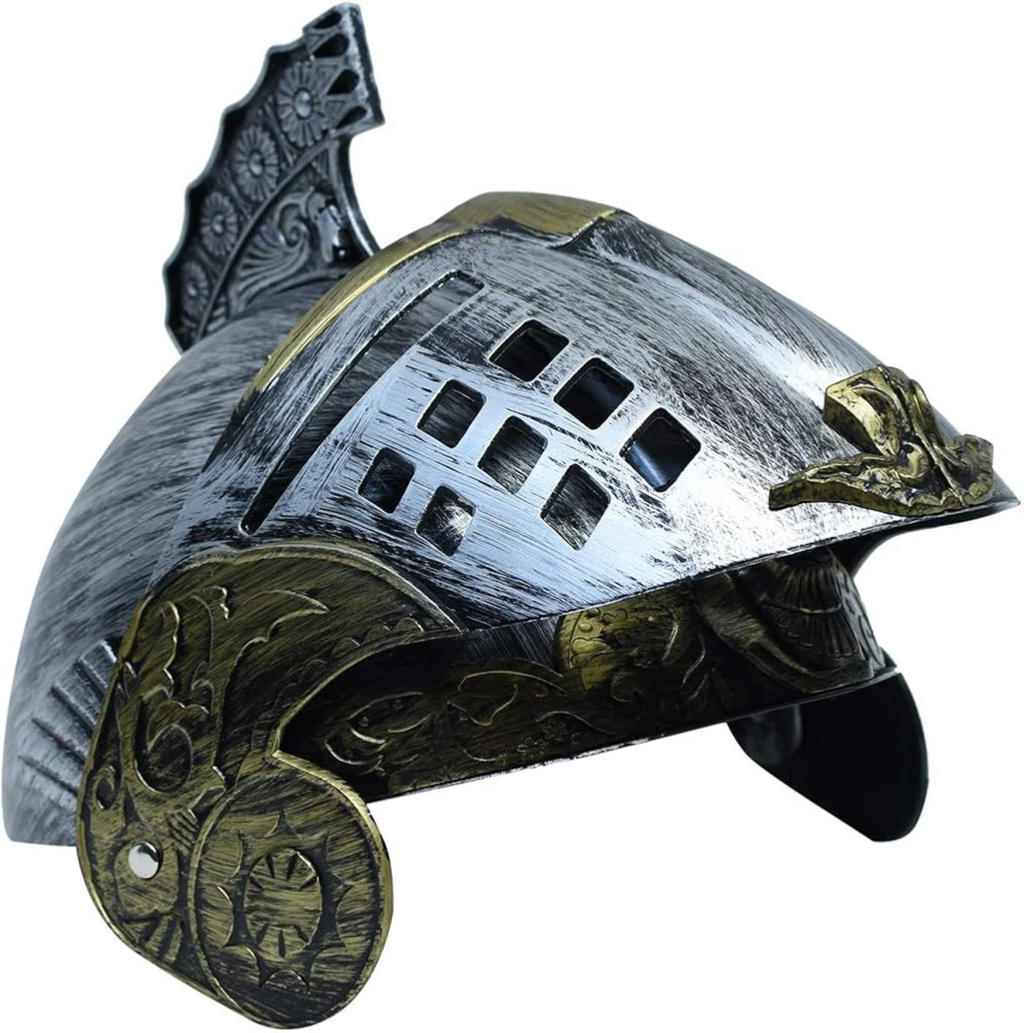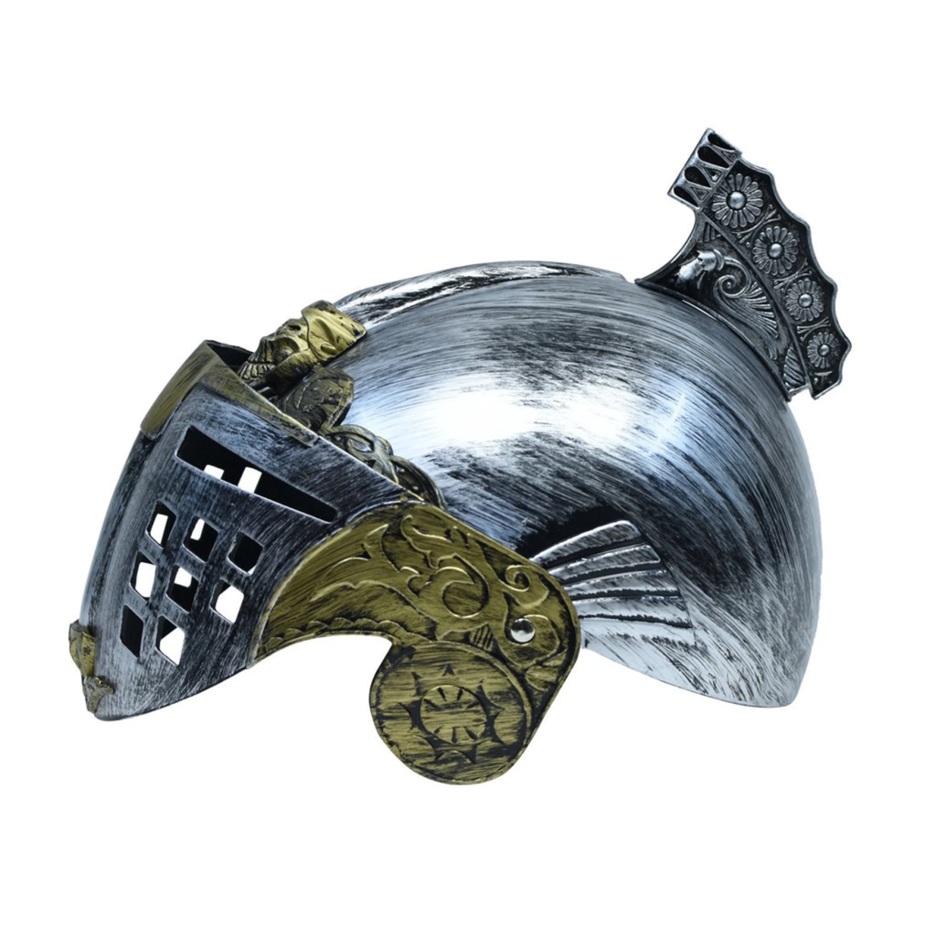 Gümüş Üzeri Altın Renk Oynar Başlıklı Romalı Bizans Kaskı Miğferi 25x20 Cm