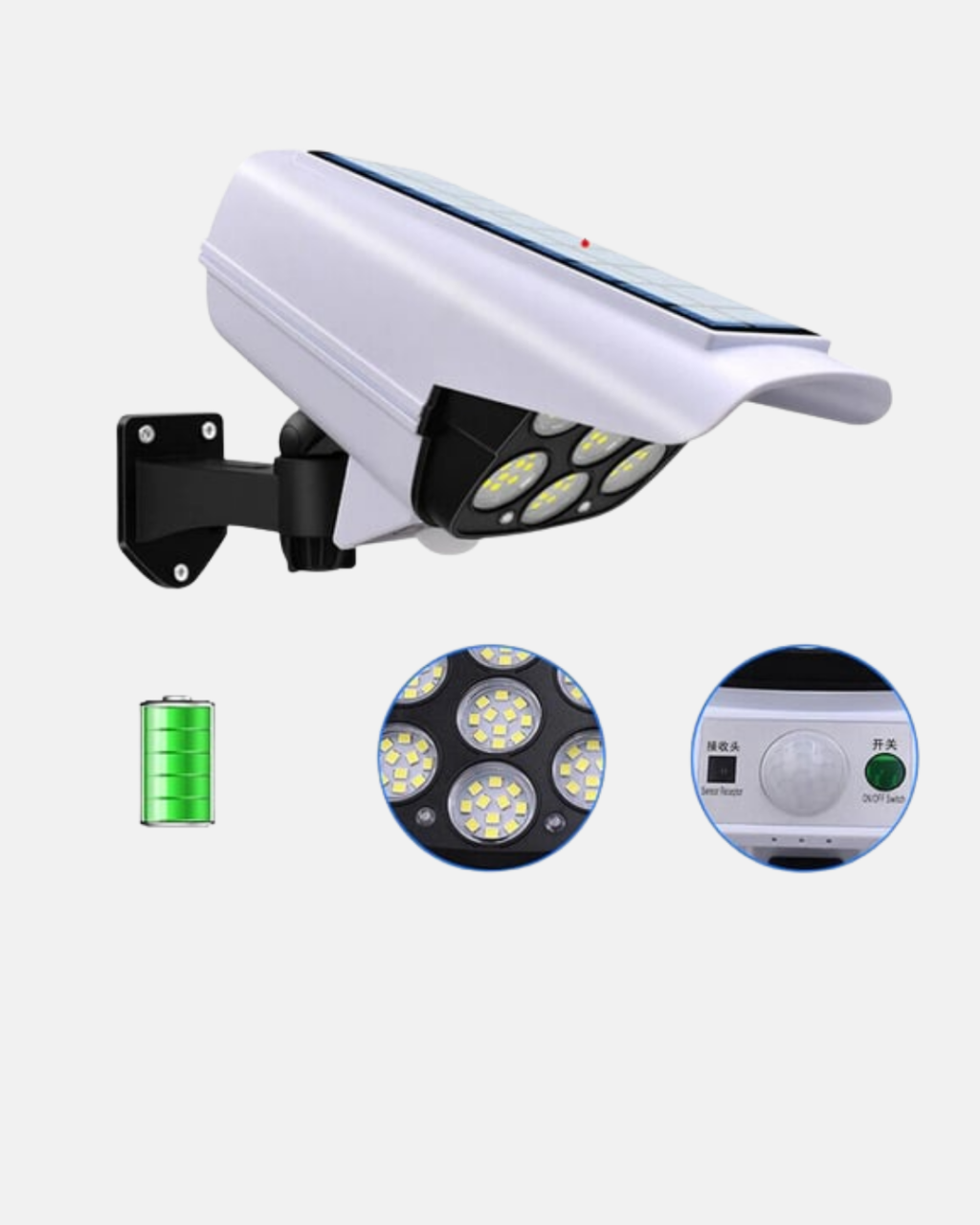 Güneş Paneliyle Şarj Olan Hareket Sensörlü Dış Mekan Güvenlik Lambası Ayarlanabilir