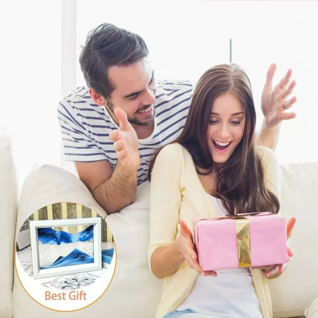Hareketli Kum Resim İllüzyon Doğal Manzara 2 Yüz Çerçeveli 3D Görüş Masaüstü Sanat Aynalı