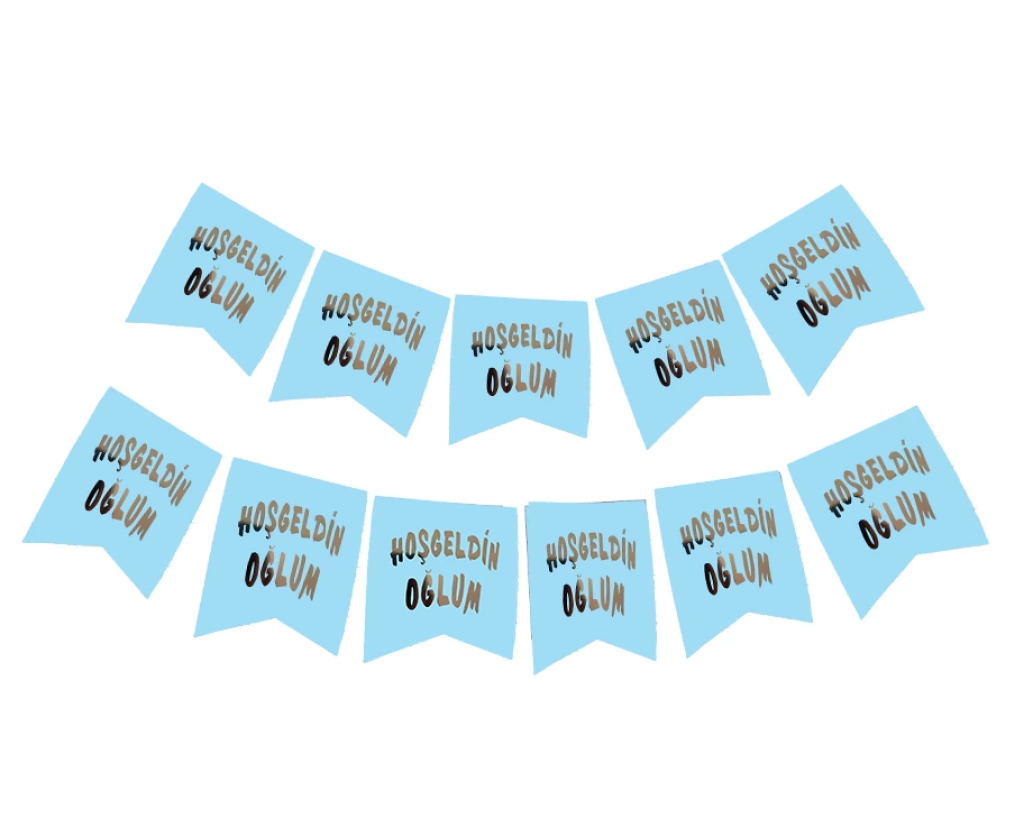 Hoşgeldin Oğlum Yazılı Mavi Üzeri Gümüş Yeni Doğan Bebek Doğum Süsü Afiş Bayrak Flama 2.2 Metre