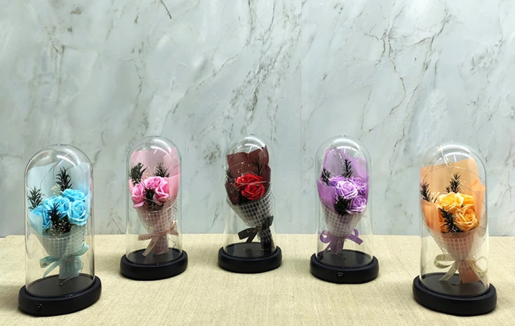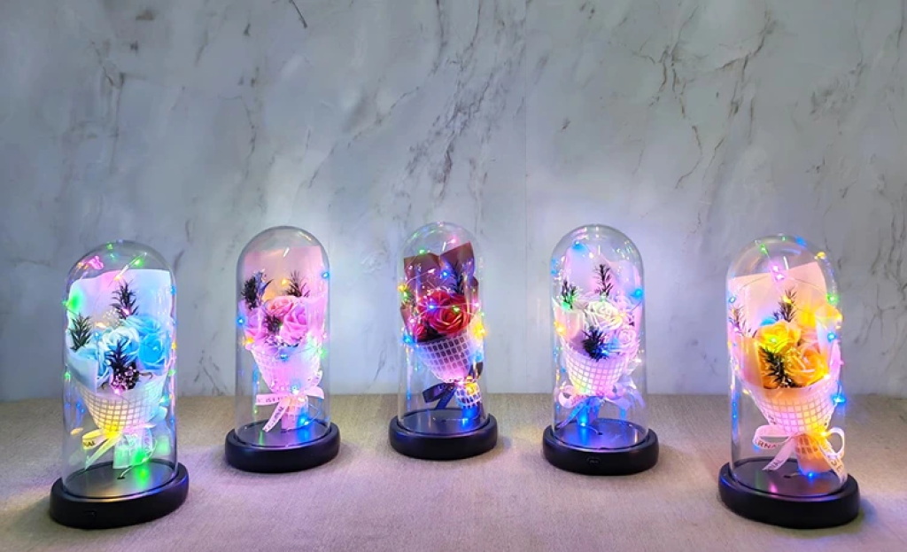 Led Işıklı Müzikli Cam Fanus İçinde Gül Buketi Alk5006