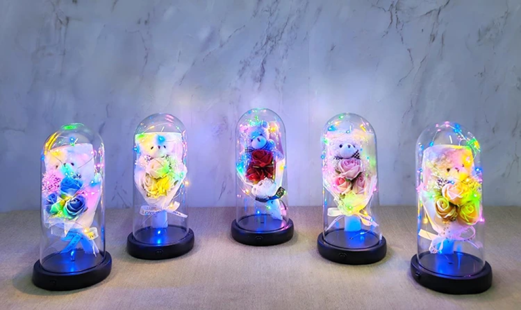 Led Işıklı Müzikli Cam Fanus İçinde Gül Buketi Alk5006