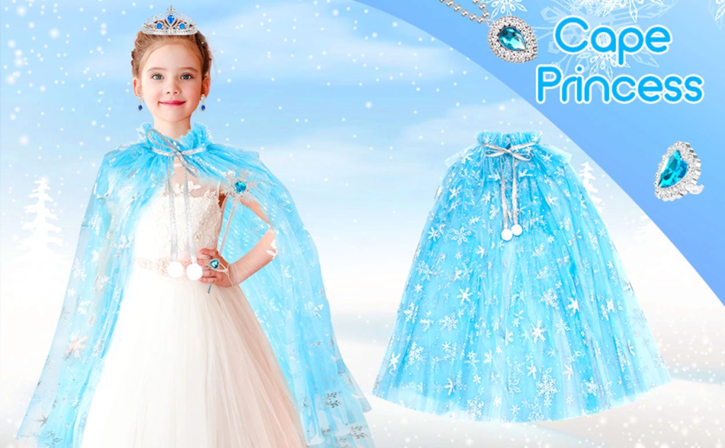 Karlar Ülkesi Elsa Frozen Mavi Pelerin – 80 Cm Kar Desenli Çocuk Pelerini ( Taç Hariç )