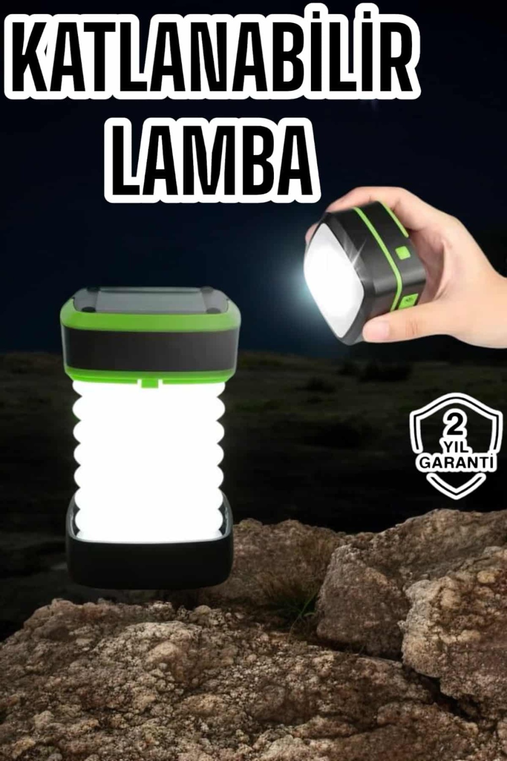 Katlanabilir Kamp Lambası Solar Fener Görünümlü 3 Kademeli Şarjlı