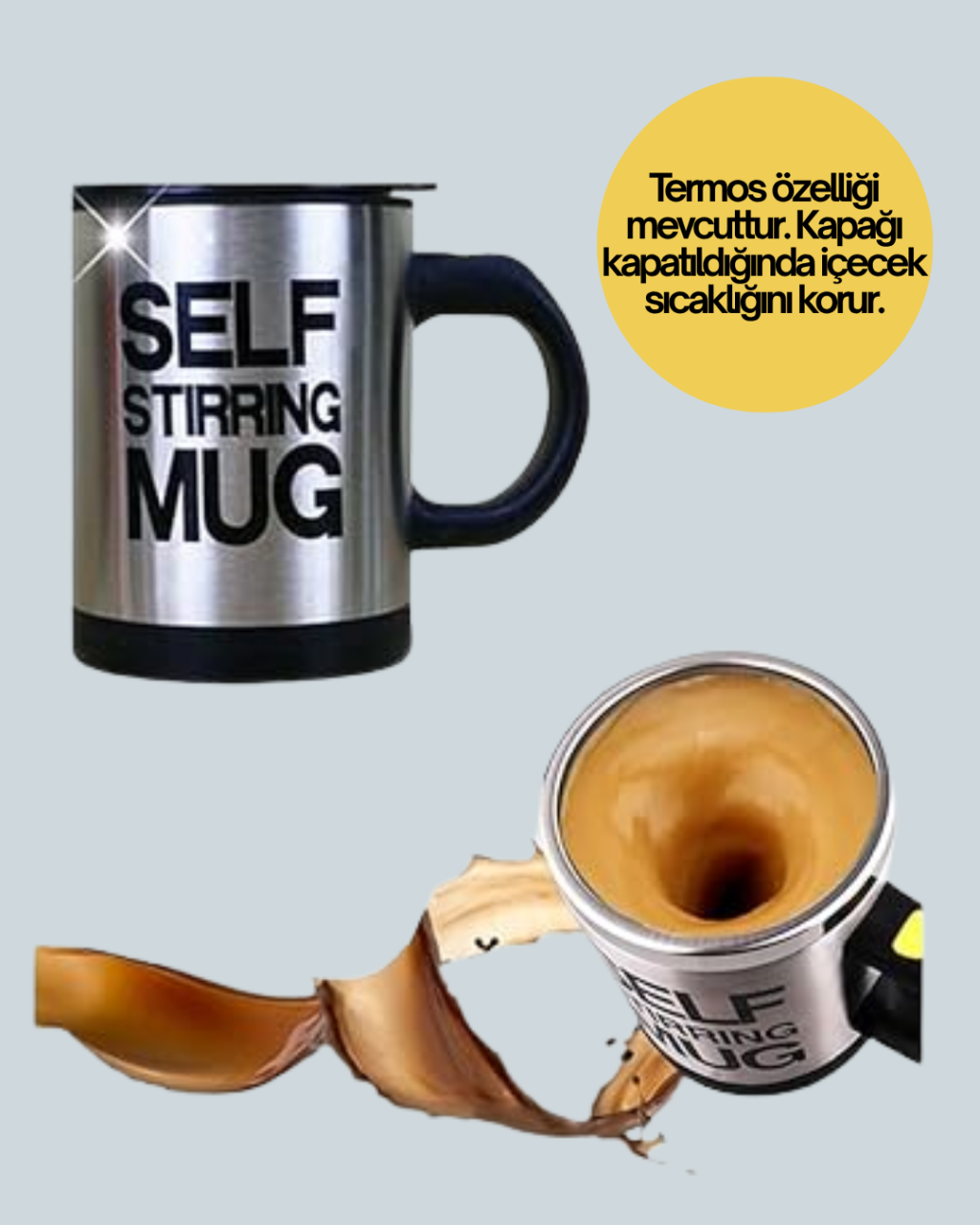 Kendi Kendini Karıştıran Termos Kupa – Pratik, Güçlü Motorlu ve Termos Özellikli