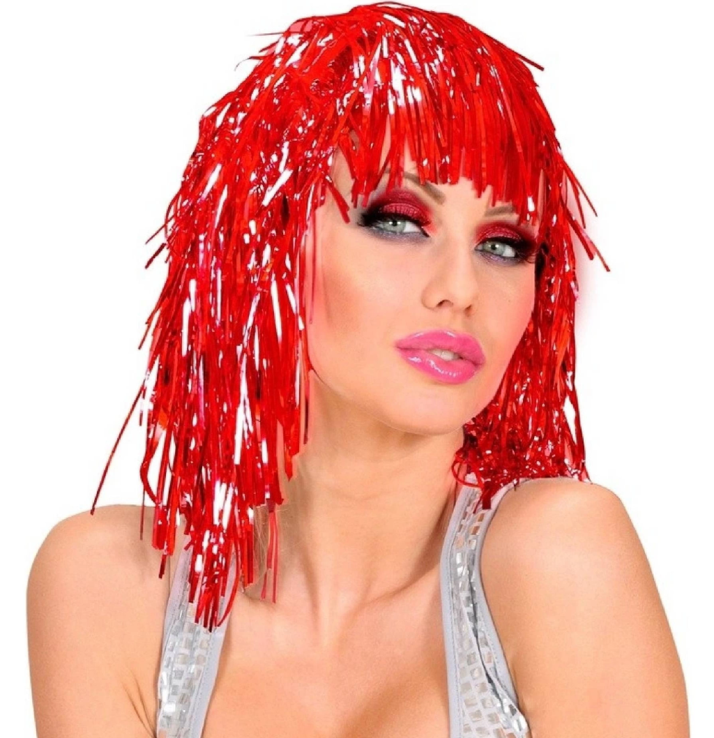 Kırmızı Işıltılı Metalize Parti Peruğu