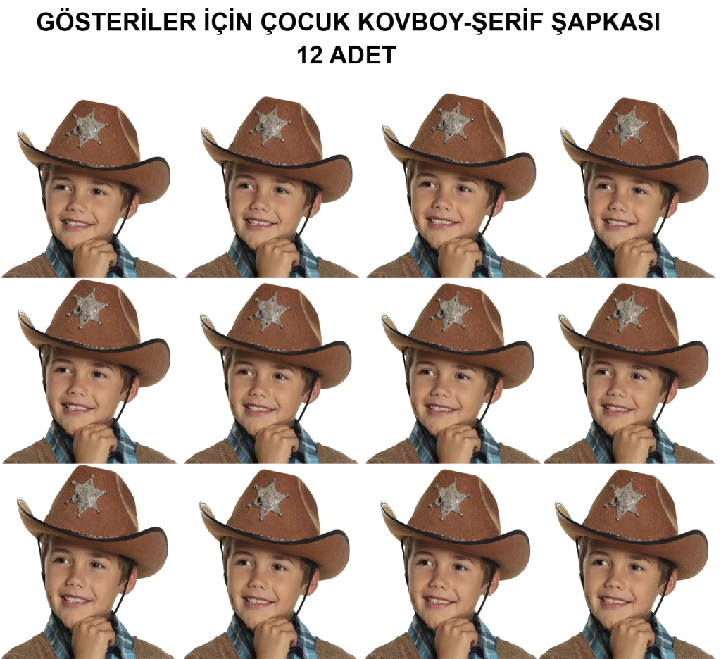 Kovboy Şerif Şapkası Kahve 12 Adet - Kostüm, Parti Ve Gösteri Şapkası