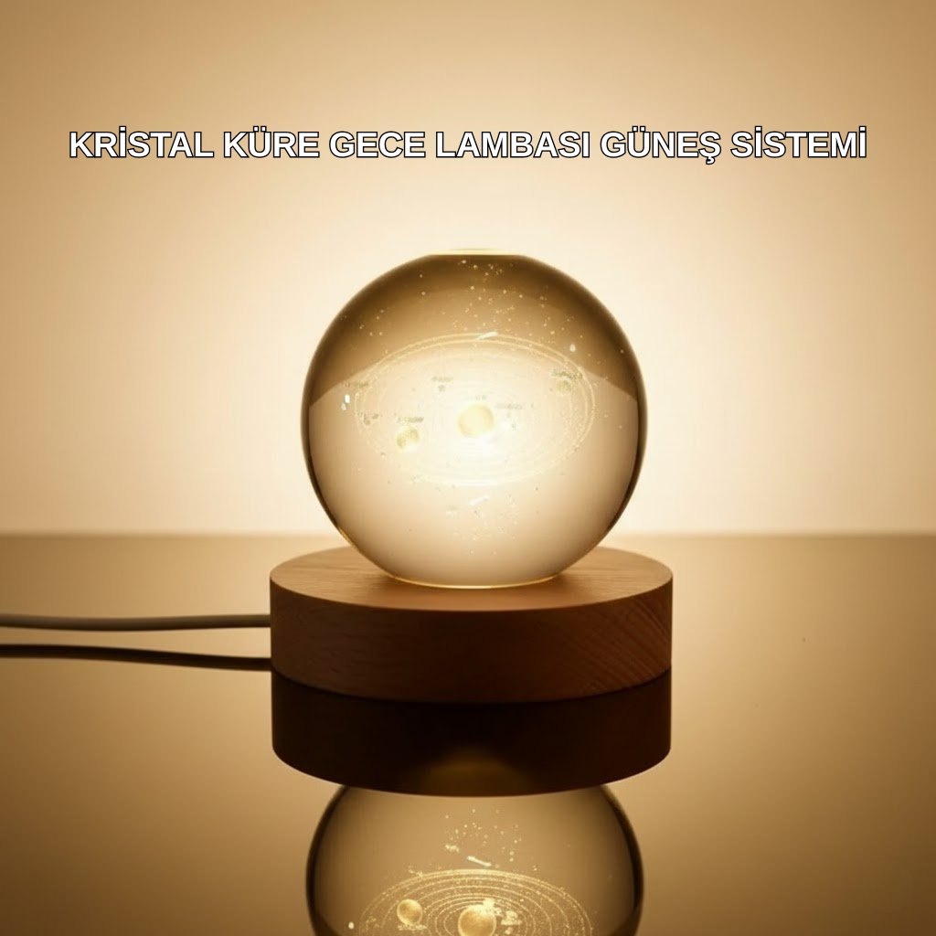 Kristal Gezegen Küre Ahşap Tabanlı USB Işıklı Gece Lambası