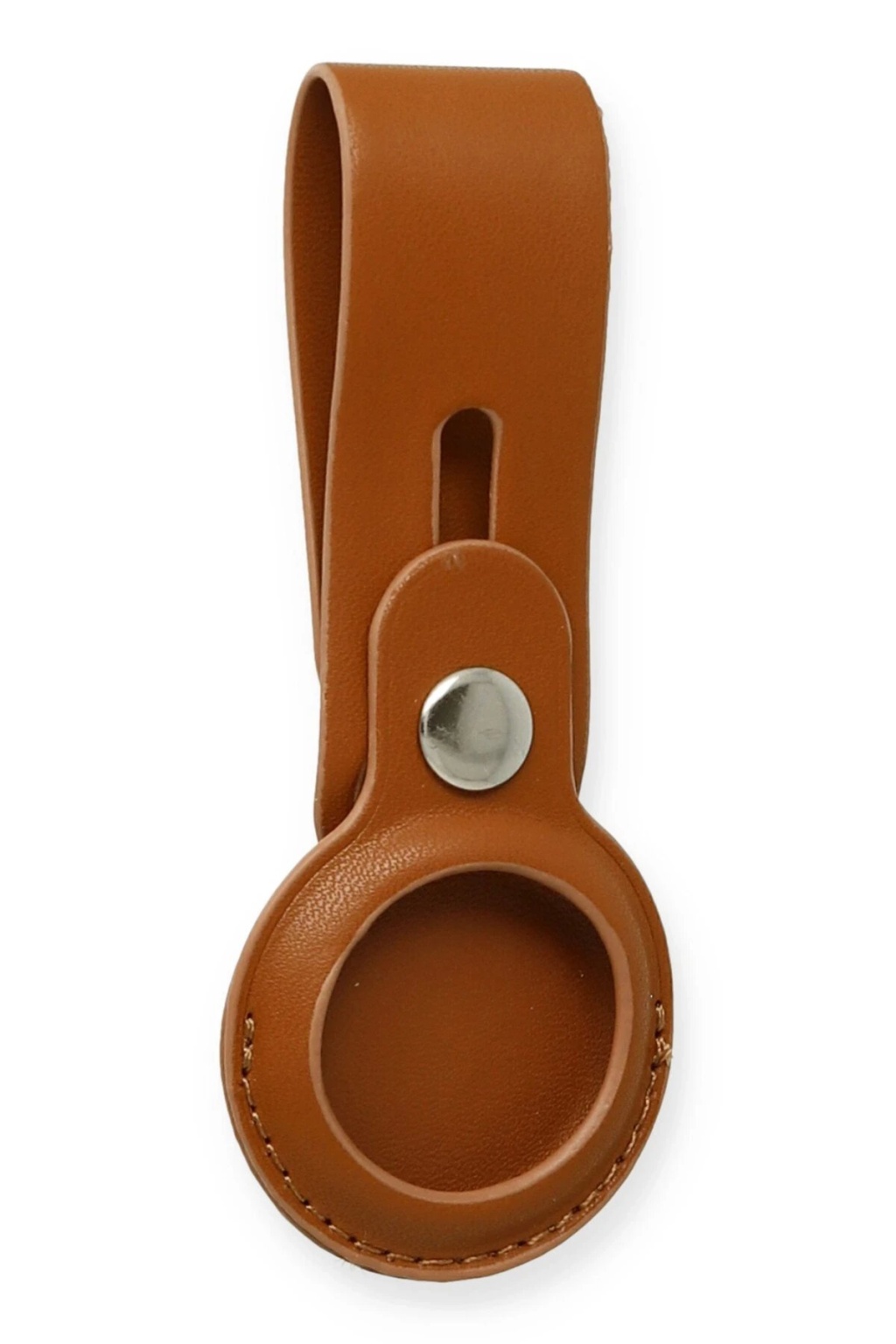 KYL06 Airtag Askılı Deri Kılıf - Taba