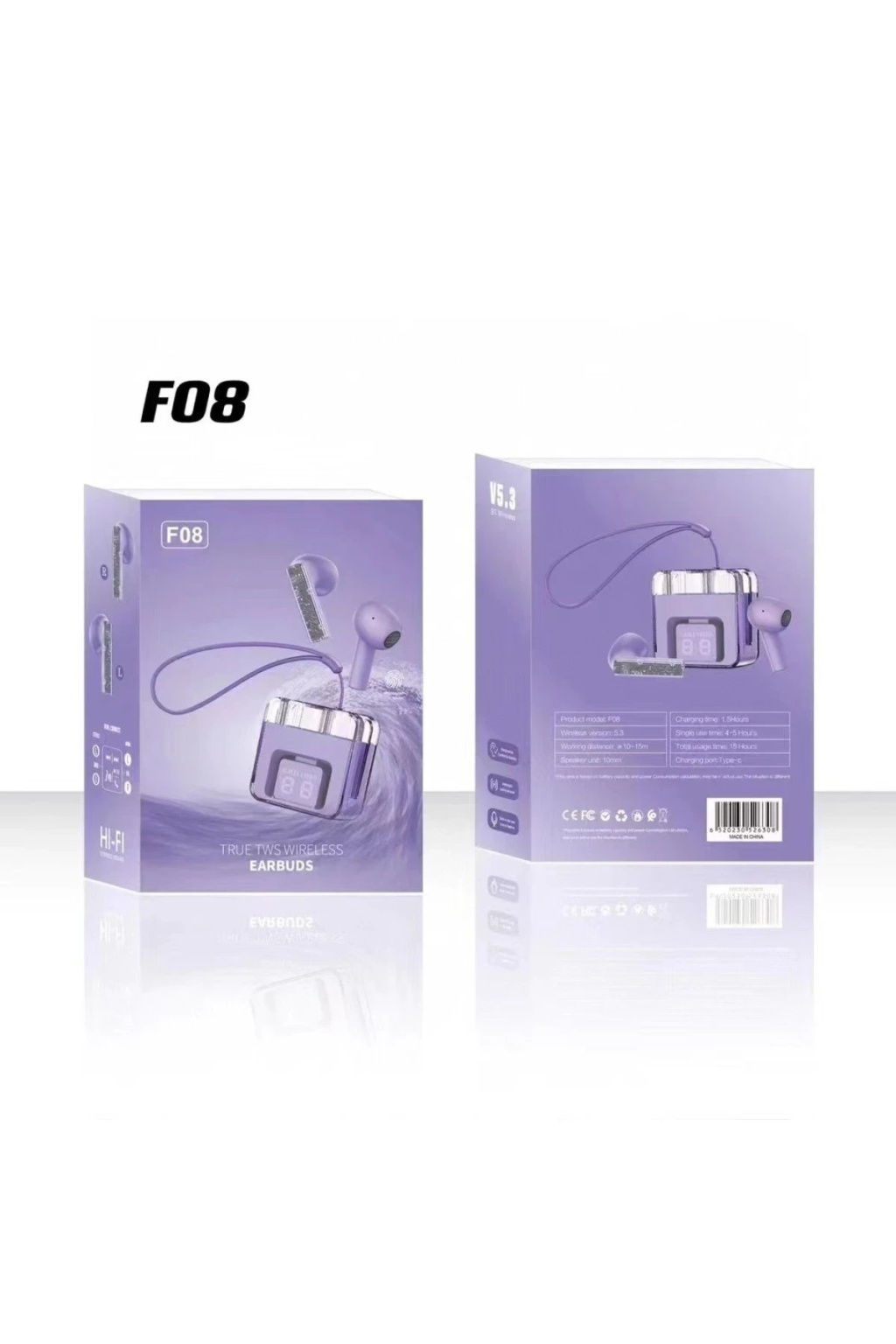 KYL06 F08 Dijital Şarj Göstergeli TWS Bluetooth Kulaklık - Mor