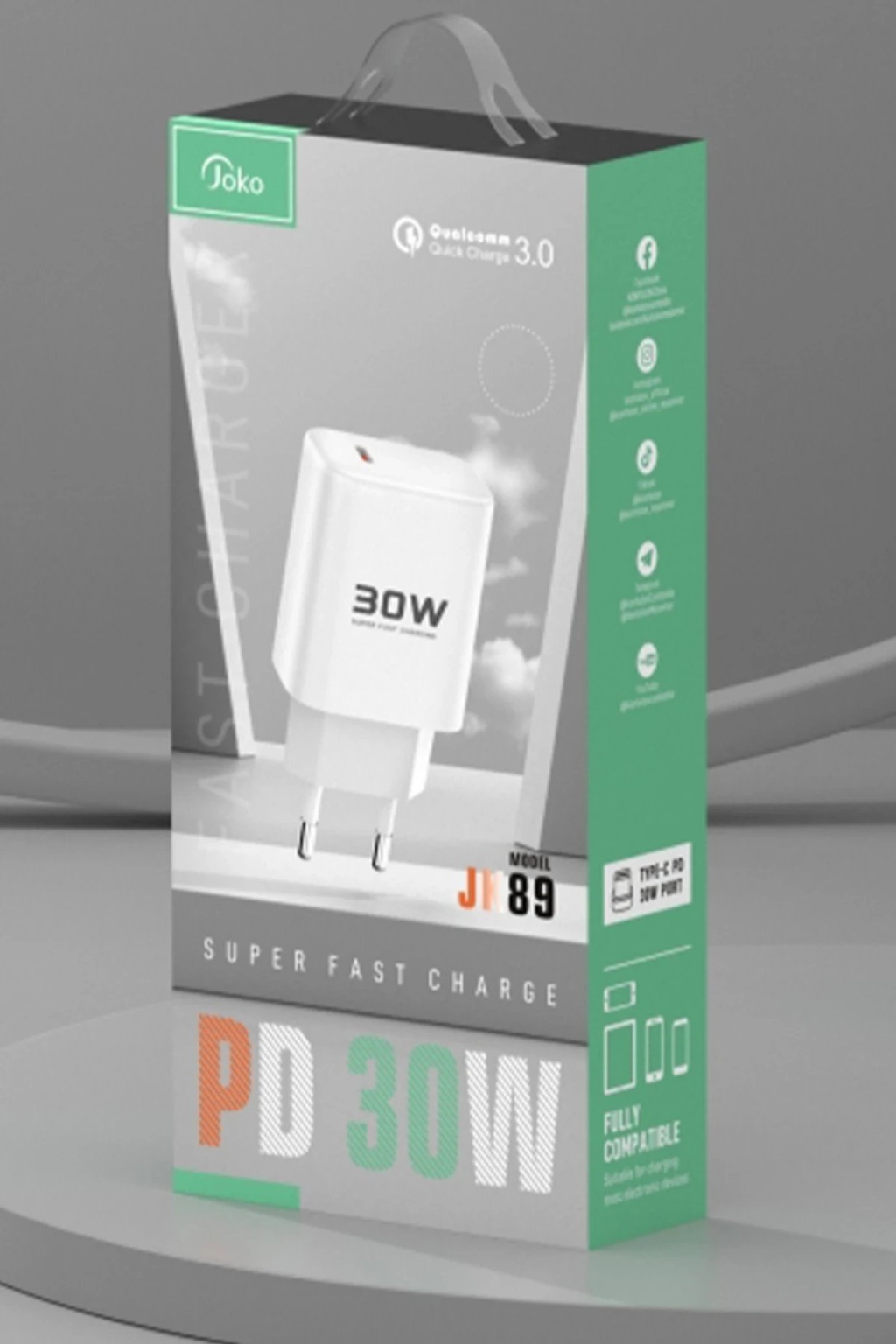 KYL06 JK89 30W Type-C Çıkışlı Ekstra DC66 1M Type-C to Lightning Kablolu PD Şarj Cihazı - Beyaz