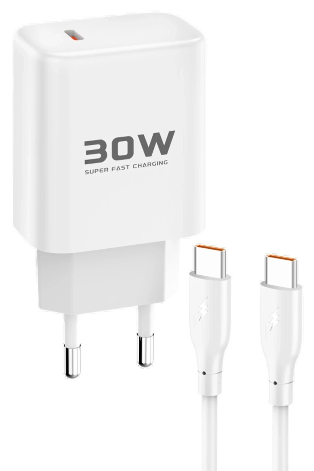 KYL06 JK89 30W Type-C Çıkışlı Ekstra DC67 1M Type-C to Type-C Kablolu PD Şarj Cihazı - Beyaz