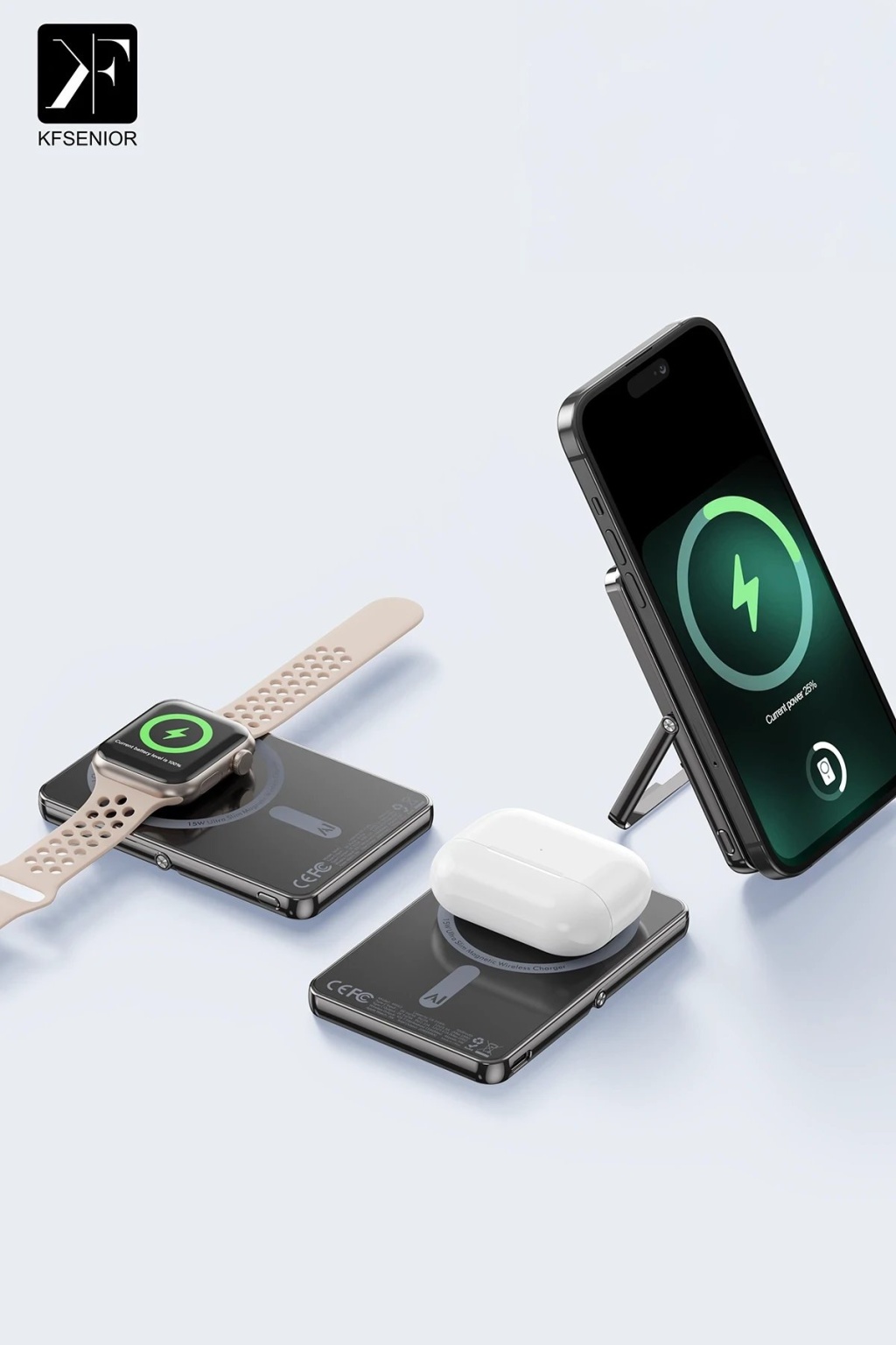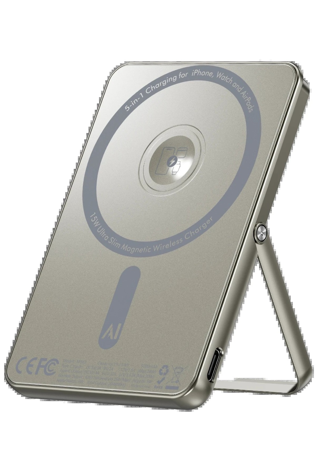 KYL06 PW580 5.000 mAh 20W Type-C 15W Kablosuz Şarj 3W Saat Şarj ve 5W Kulaklık Şarj Destekli PD Hızlı Şarj Magsafe Powerbank - Titanyum