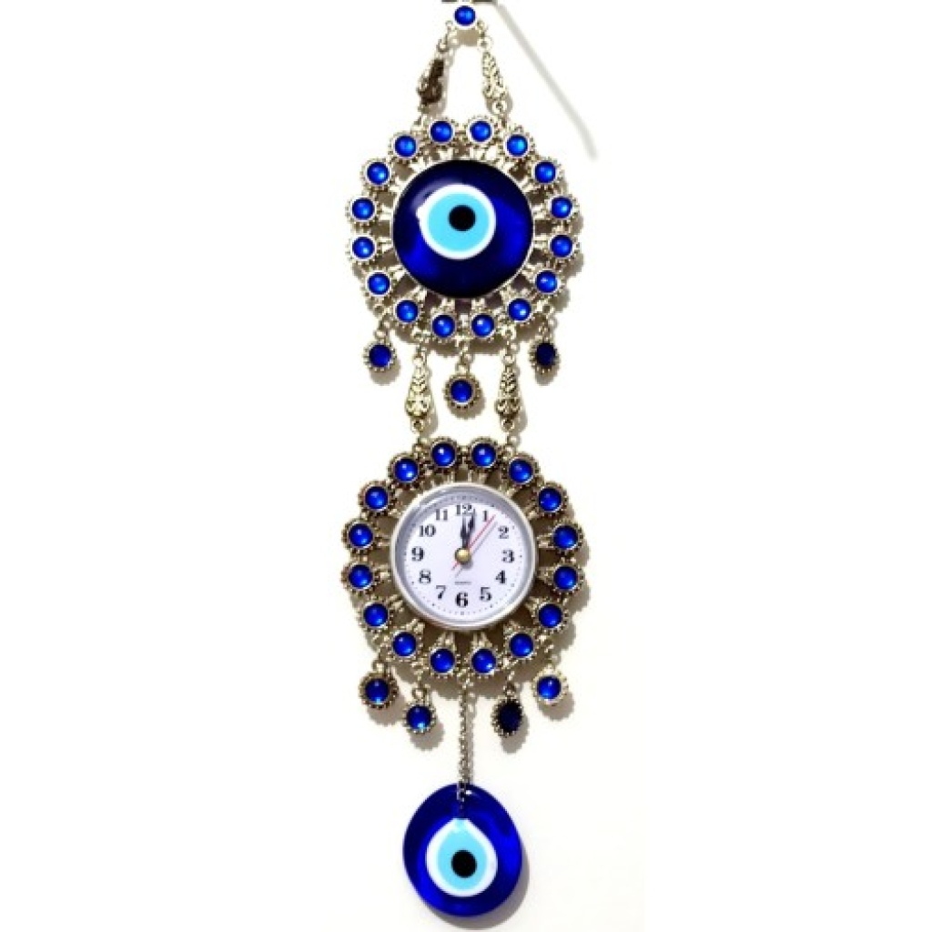 Nikel Zamak Kaplamalı Nazar Boncuklu Gümüş Rengi Mini Duvar Saati