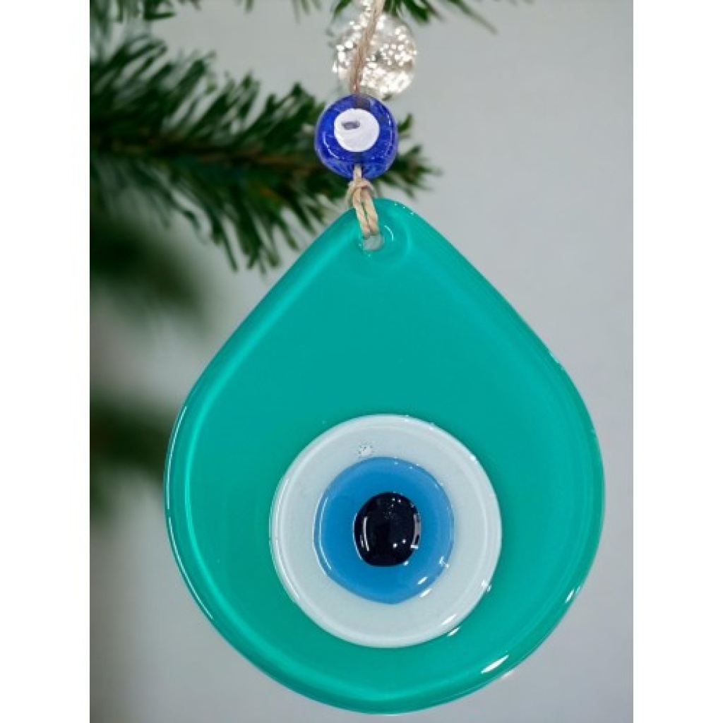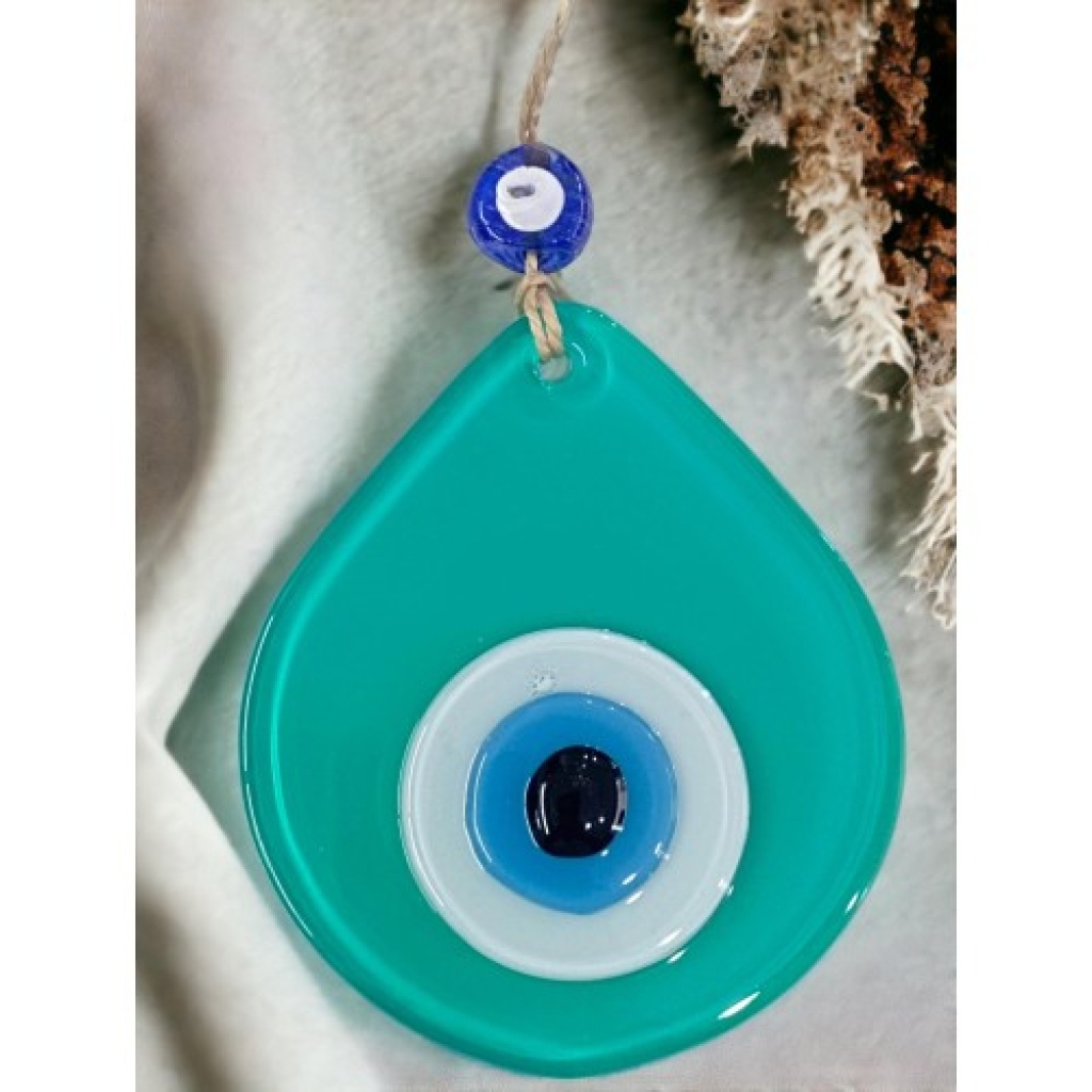 Orta Boy Açık Yeşil Damla Desen Nazar Boncuklu Duvar Dekoru Cam Duvar Süsü