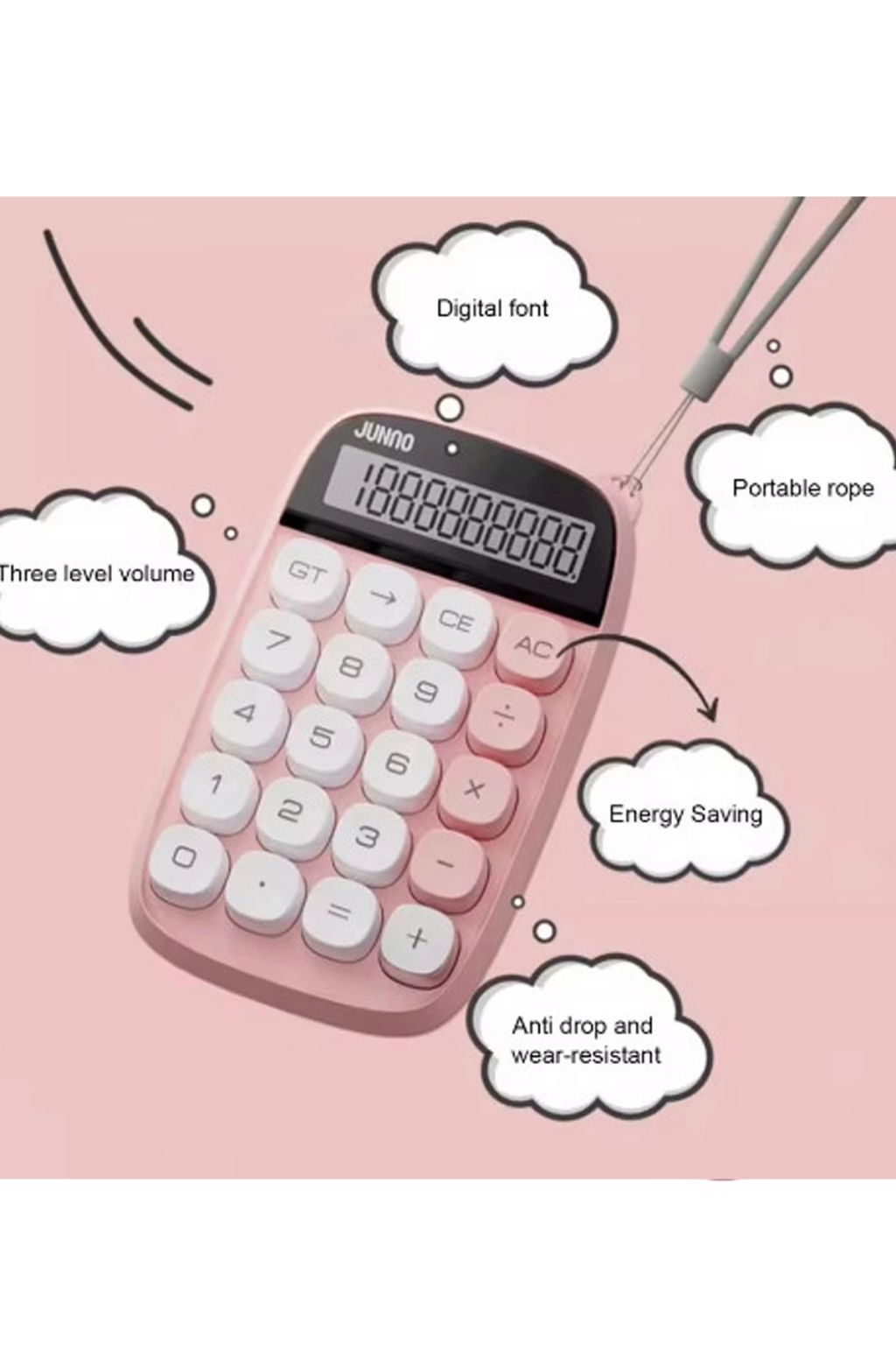 Sevimli Kare Tuşlu 10 Haneli Ldc Ekran Hesap Makinası Pembe