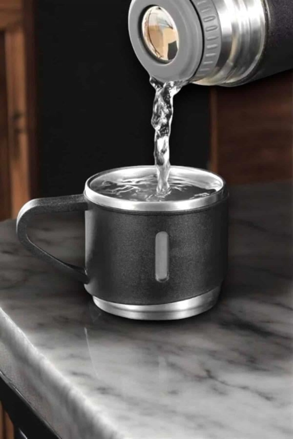 Termos Seti 3'lü Bardak Seti Isı Dayanıklı Siyah Paslanmaz Çelik Vakumlu