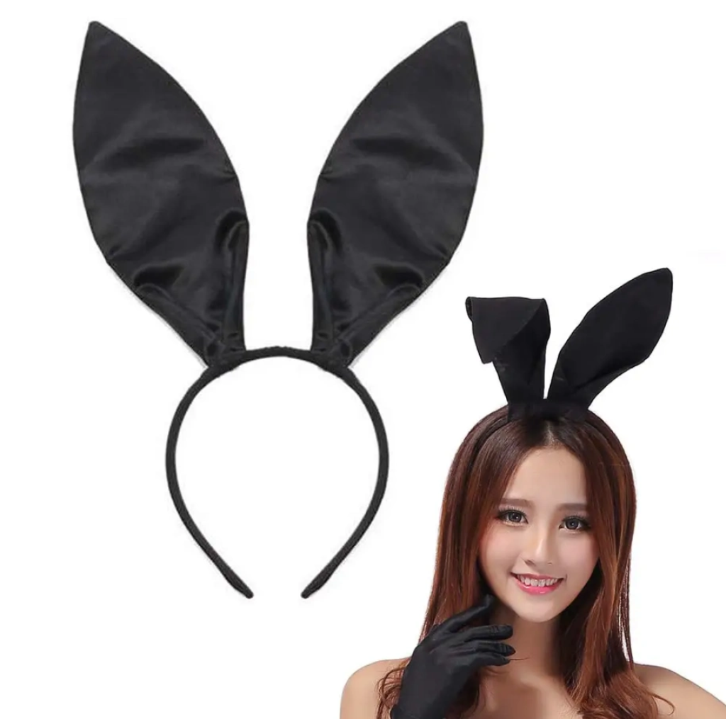 Siyah Renk Saten Kaplama Şekil Verilebilir Tavşan Kulak Taç 35x11 Cm