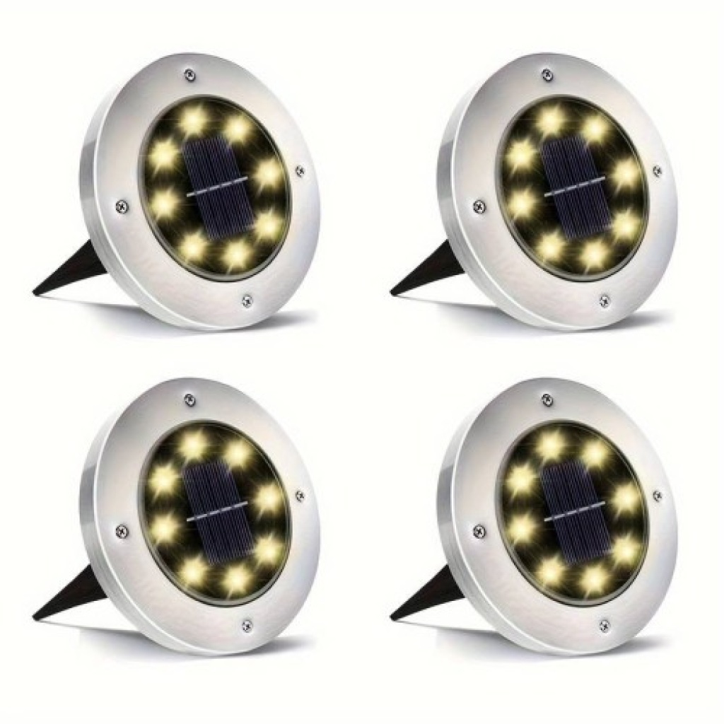 Solar Güneş Enerjili 8 ledli Kazıklı Çim Zemin Bahçe Aydınlatması 4 Lü Set