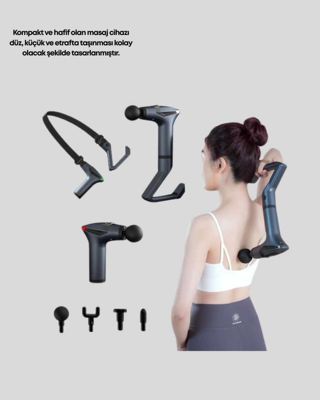 2000 mAh Şarjlı Masaj Tabancası 6 Başlık Ayarlı Güçlü Masaj Cihazı