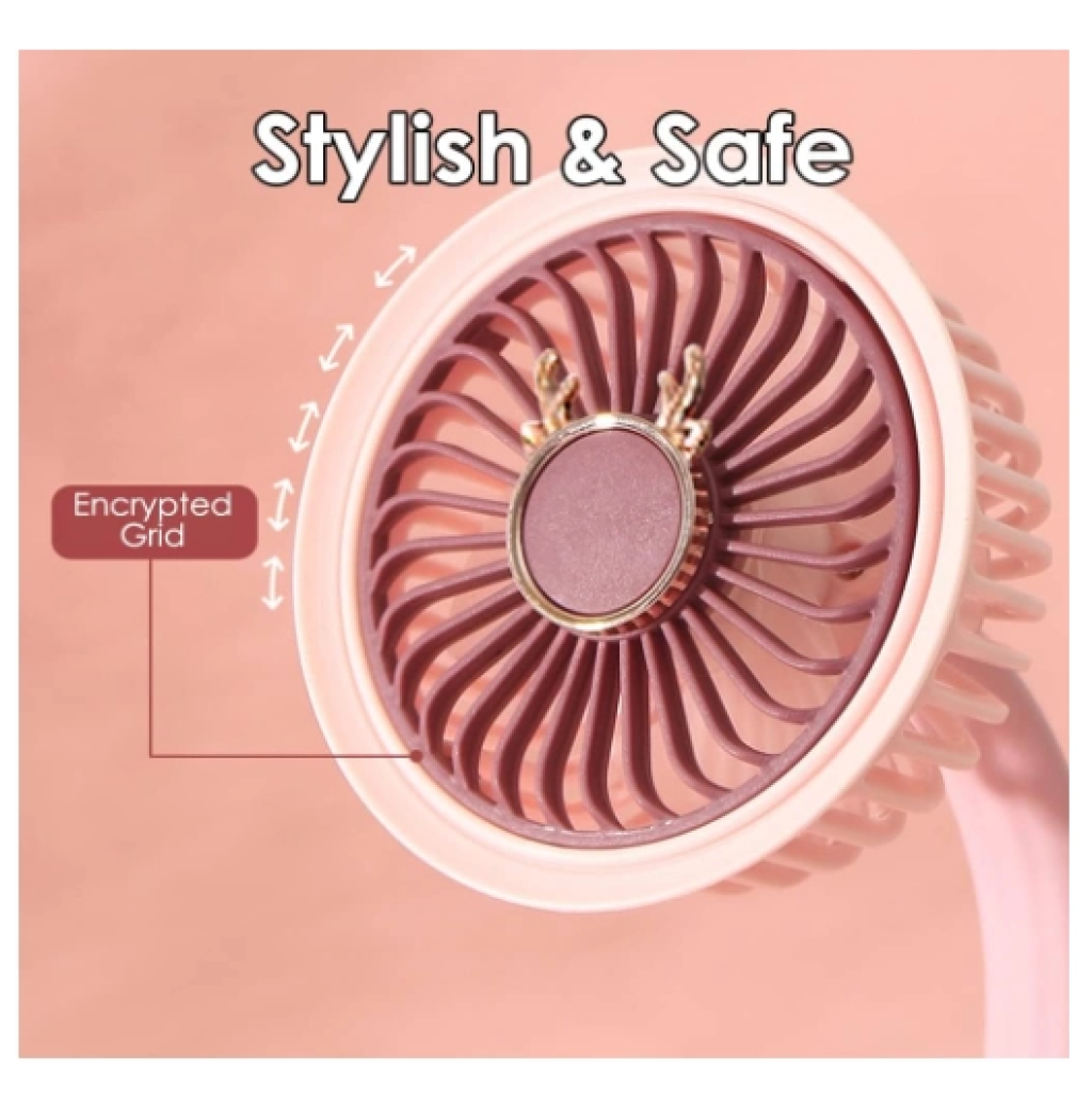 Masaüstü Vantilatör Usb Şarjlı Rgb Led Işıklı 3 Kademeli 180° Ayarlanabilir Soğutucu Fan Pembe
