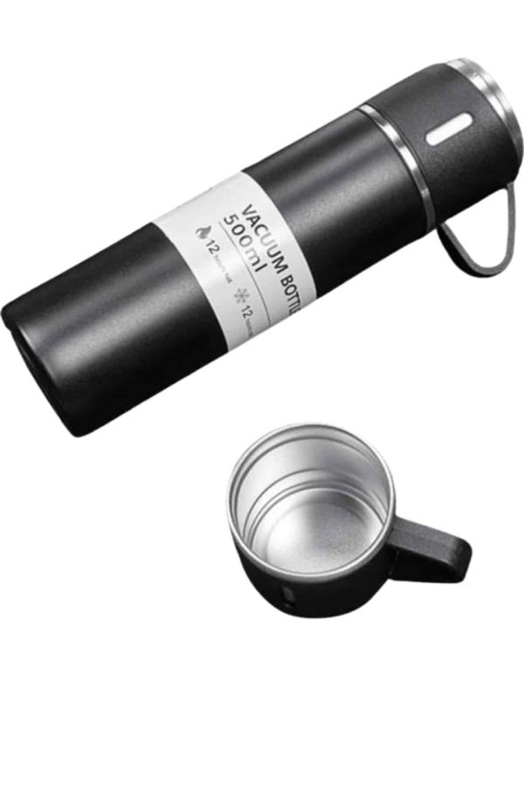 Termos Paslanmaz Çelik Termos Siyah Renk 3 Bardaklı Termos Seti