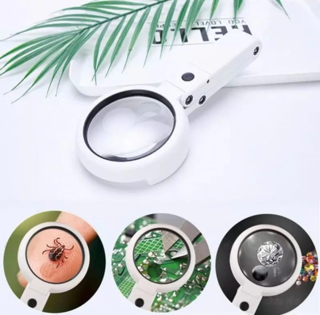 3 Ledli Işıklı El Büyüteci 250 Lümen Beyaz Işık Büyüteç 3x Zoom Tamirci Büyüteç Wt374