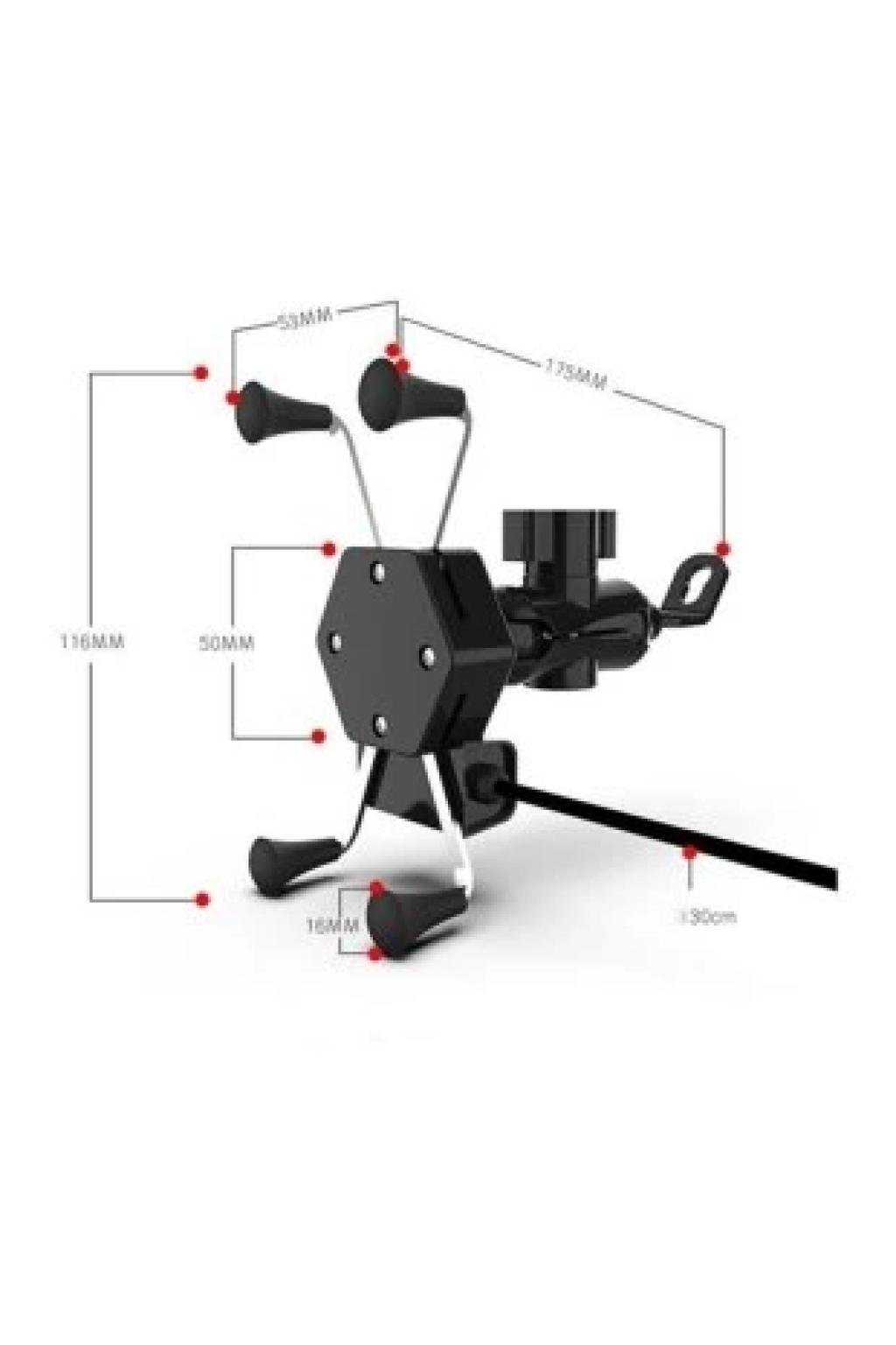 Usb Şarjlı Ayna Bağlantılı Motosiklet Telefon Tutucu Motor Tutacağı