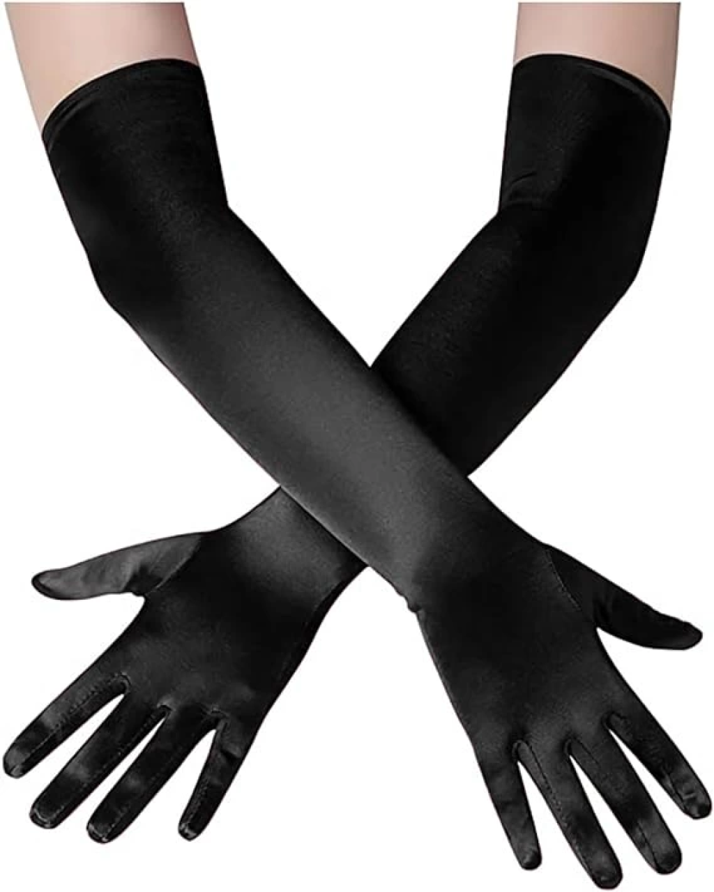 Siyah Renk Likralı Dirseğe Kadar Uzun Kumaş Eldiven 40 Cm
