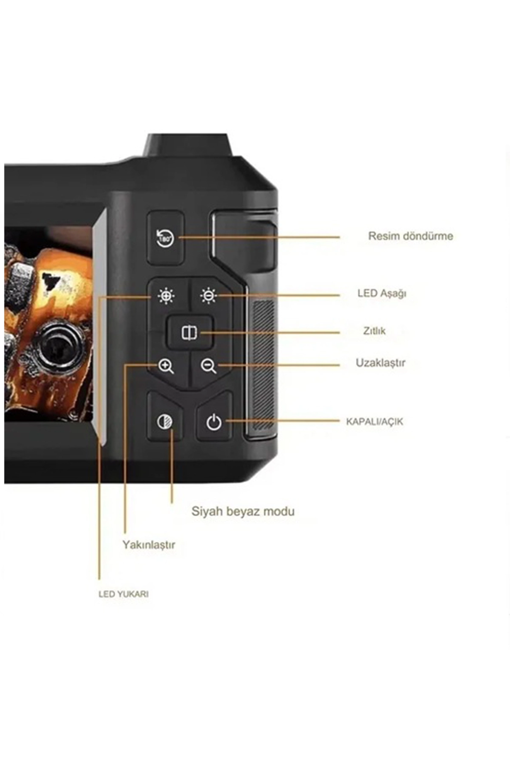 Ekranlı 3 Kameralı 10 Mt Hafıza Kart Destekli Sert Kablo Yılan Endoskop Kamera 8 Mm 4.3 Inc